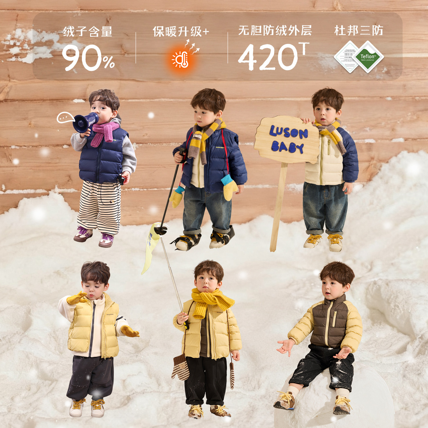 小O爸男婴童 男宝宝羽绒服冬季90绒马甲内胆外出婴儿杜邦三防外套