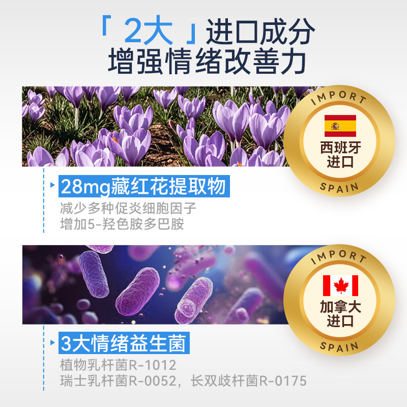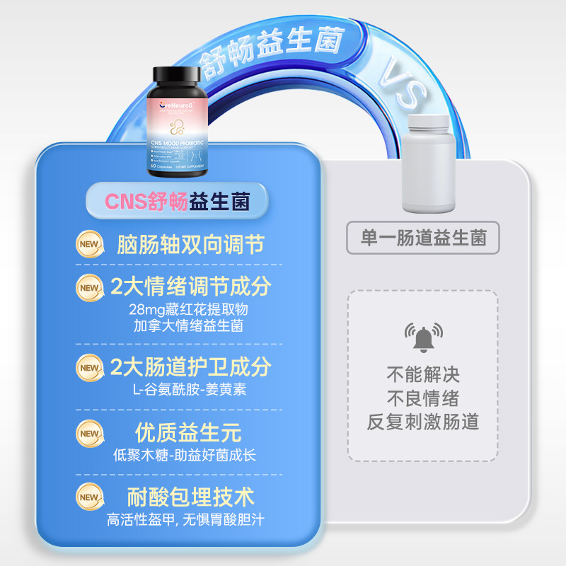 CreNeuroS美国进口CNS舒畅益生菌胶囊60粒藏红花提取物情绪益生菌