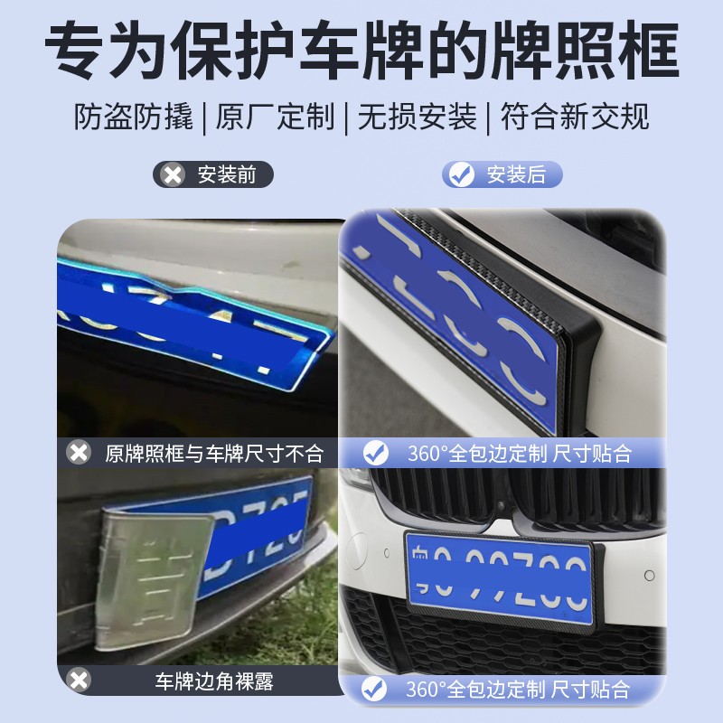 佳兰迪车牌保护边框牌照架汽车加厚合金车牌框架车牌架蓝绿牌照框