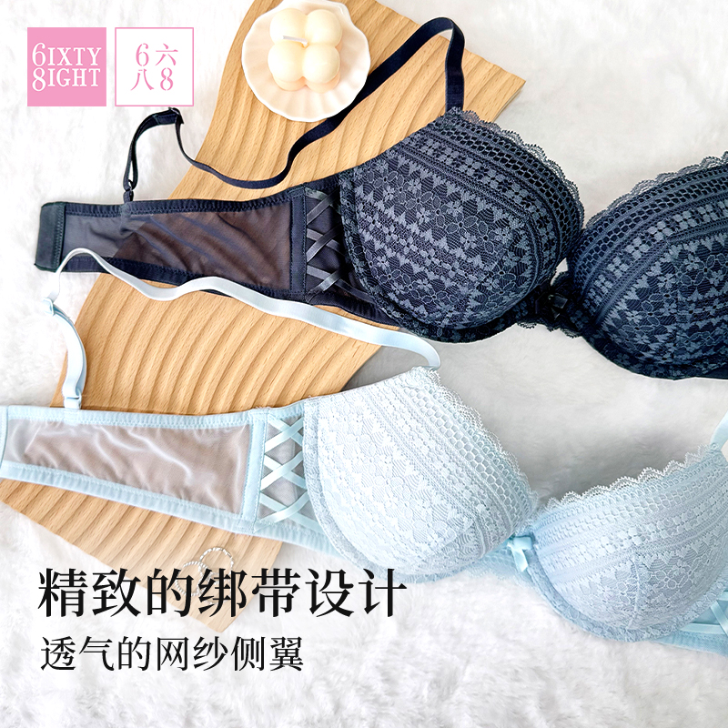 6IXTY8IGHT 68内衣女新款聚拢小胸显大透气性感软钢圈蕾丝文胸罩