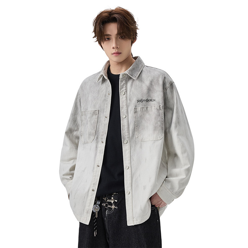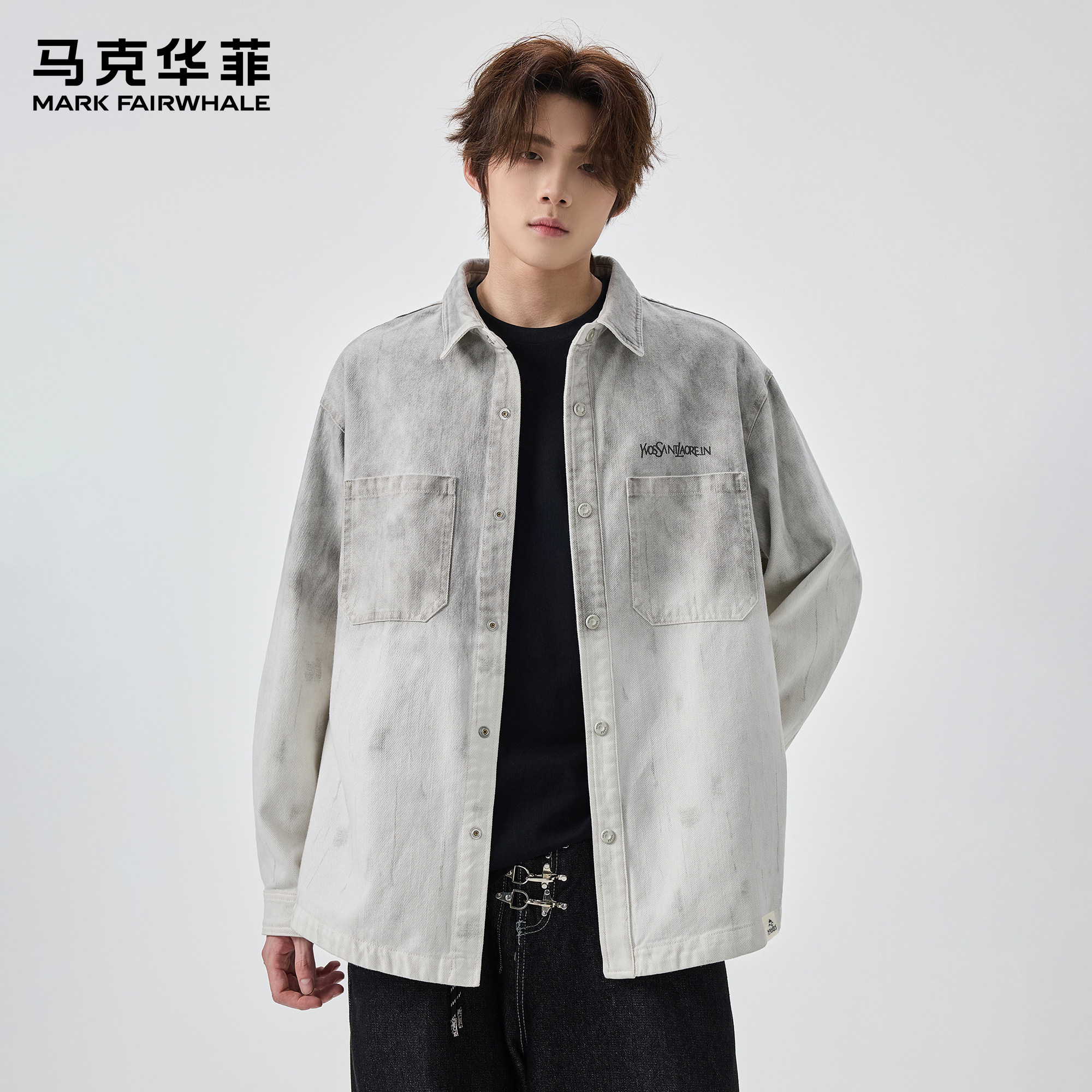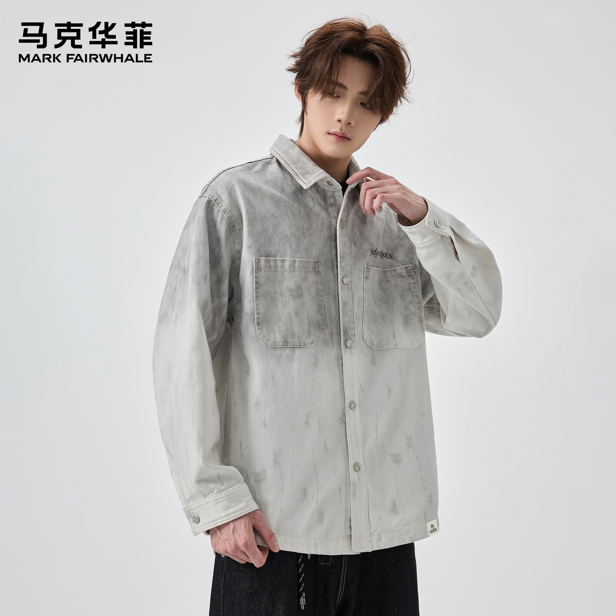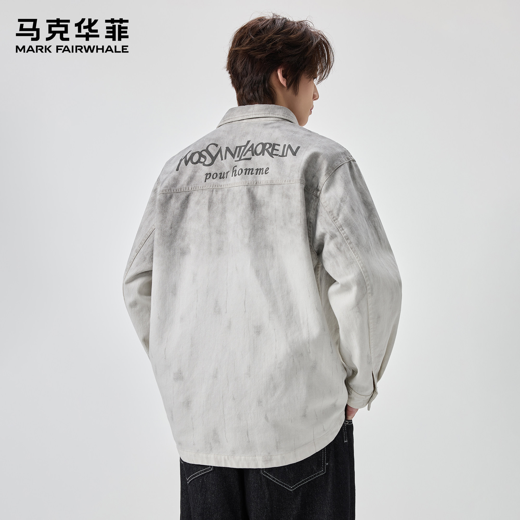 马克华菲长袖衬衫男生新款春季潮牌美式高街复古字母印花翻领外套