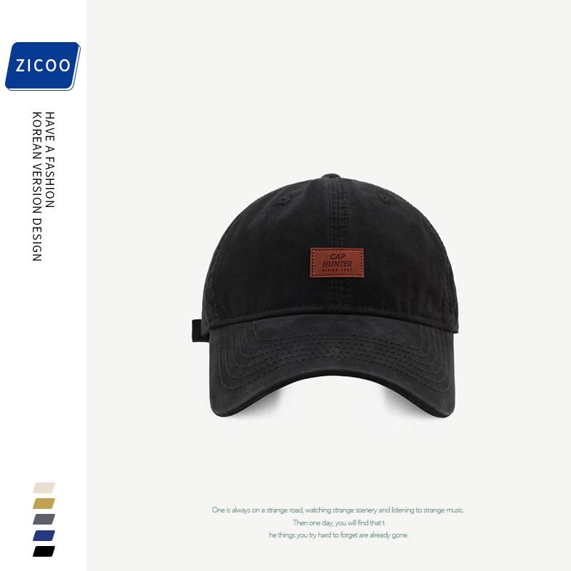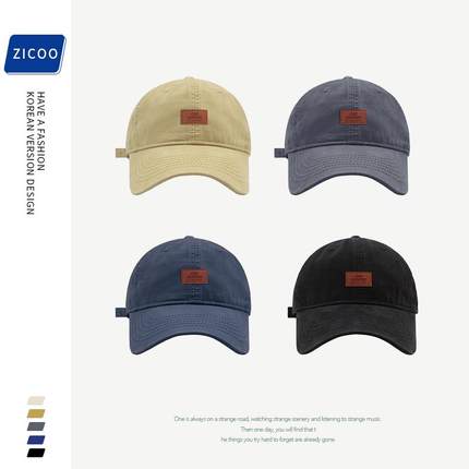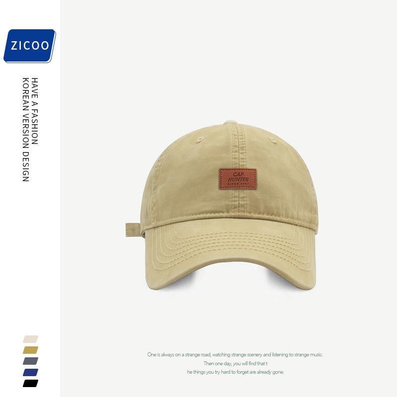 卡其皮标棒球帽男女同款中性风