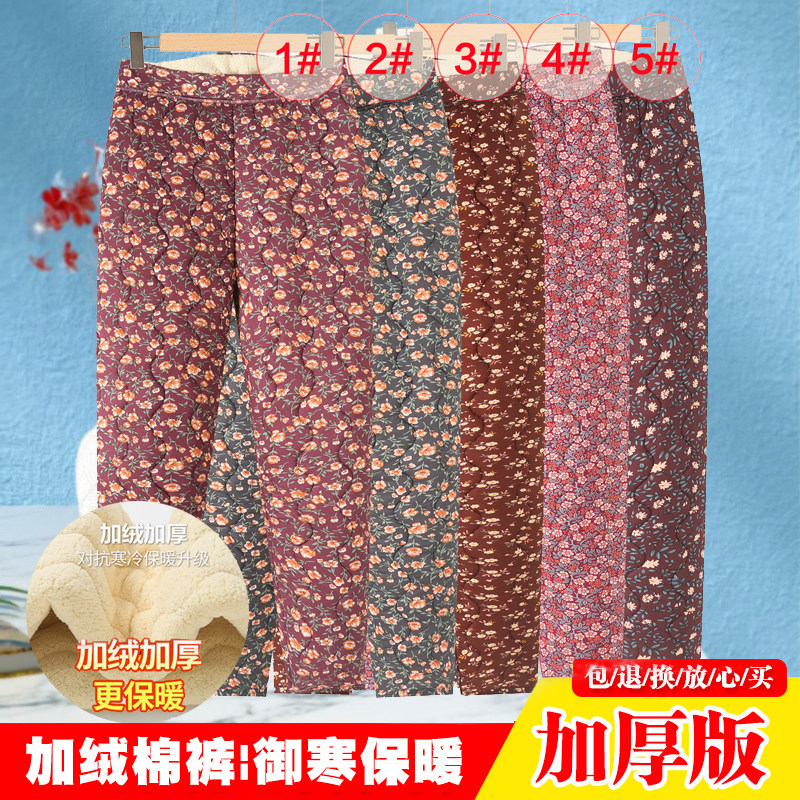 中老年人妈妈冬季加绒保暖花棉裤
