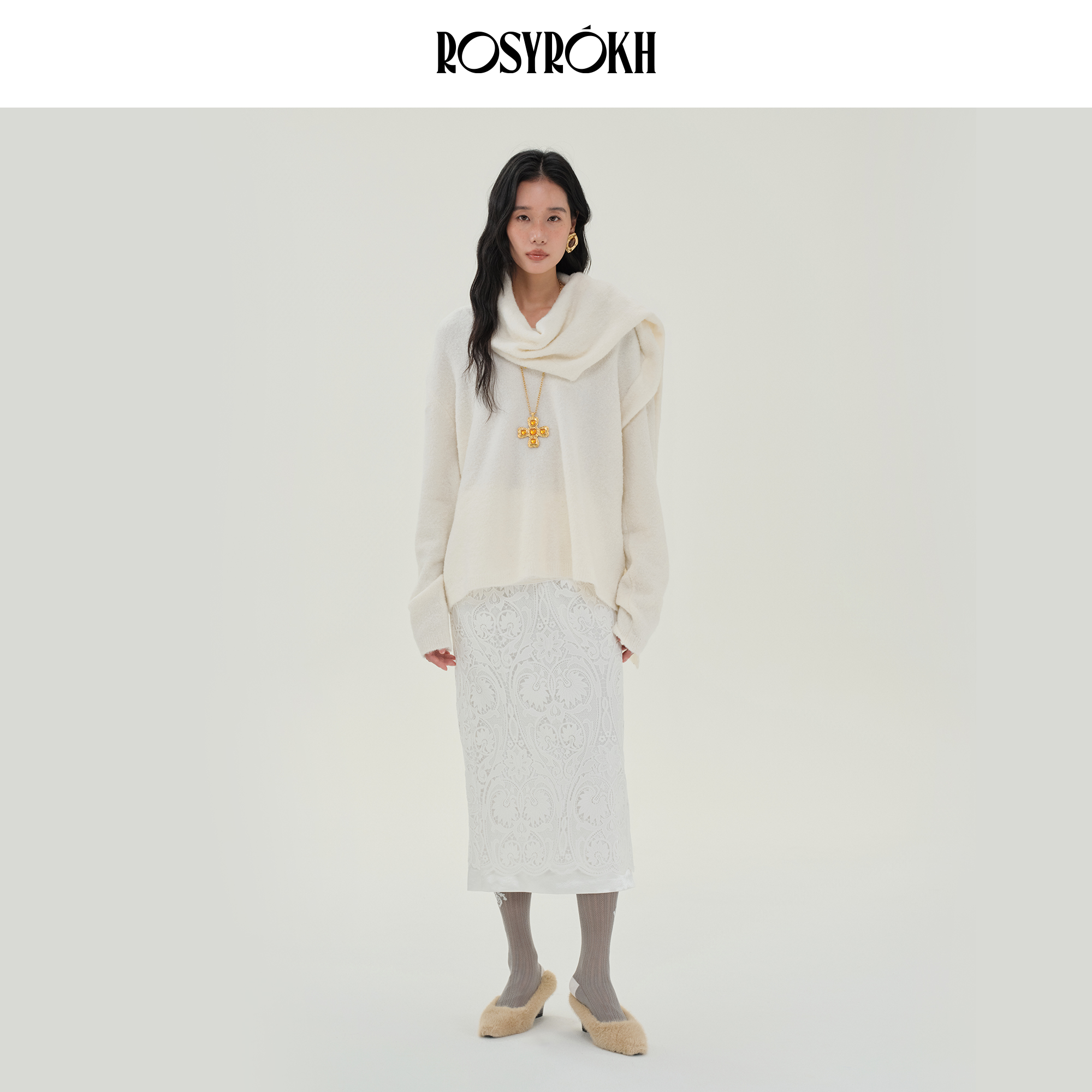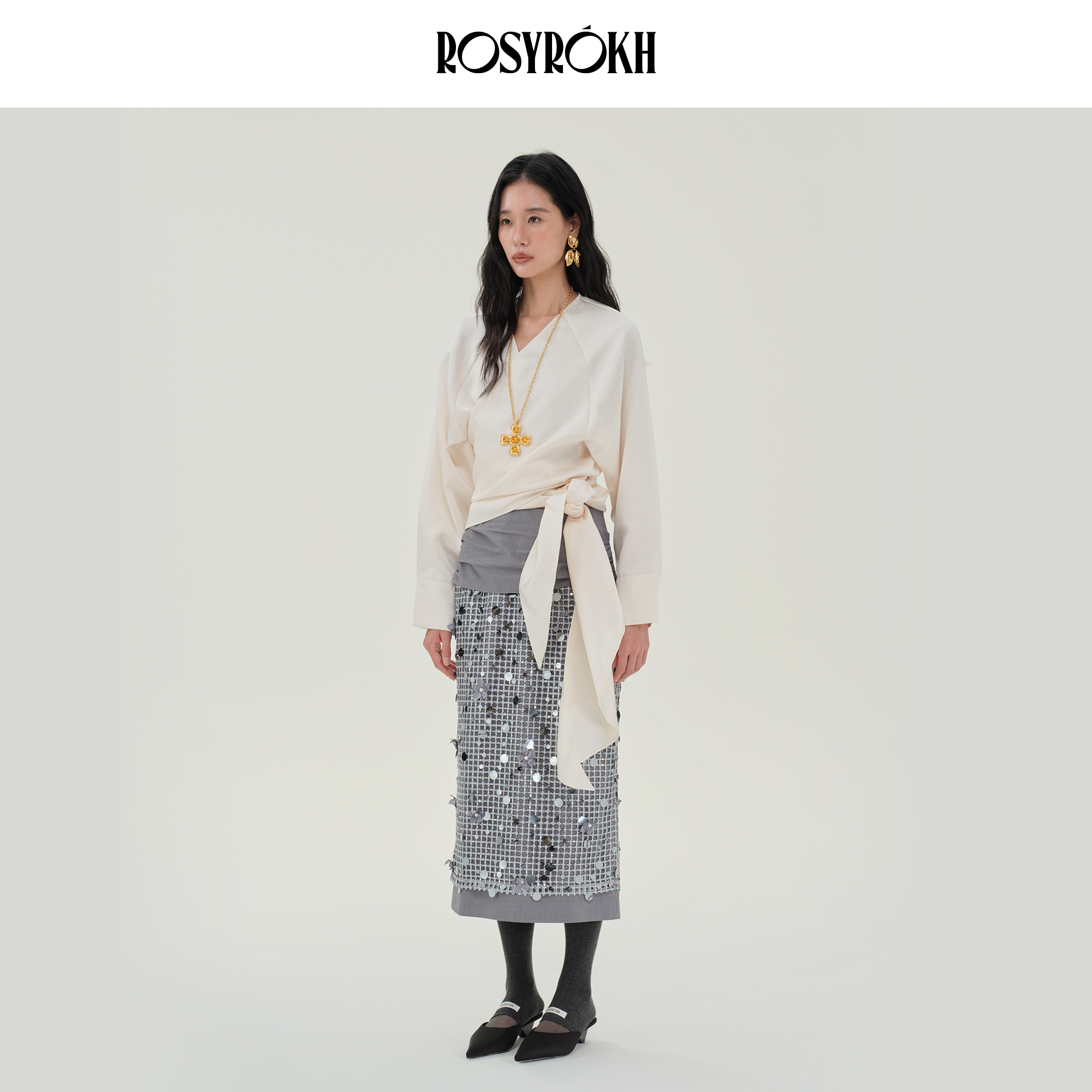 ROSYROKH原创设计25AW蕾丝亮片半身裙女高腰显瘦包臀裙长款半裙子