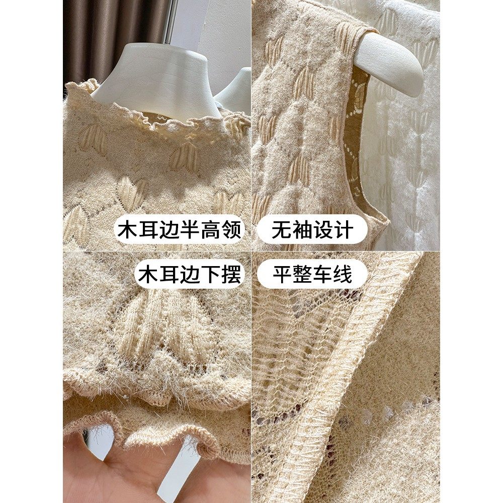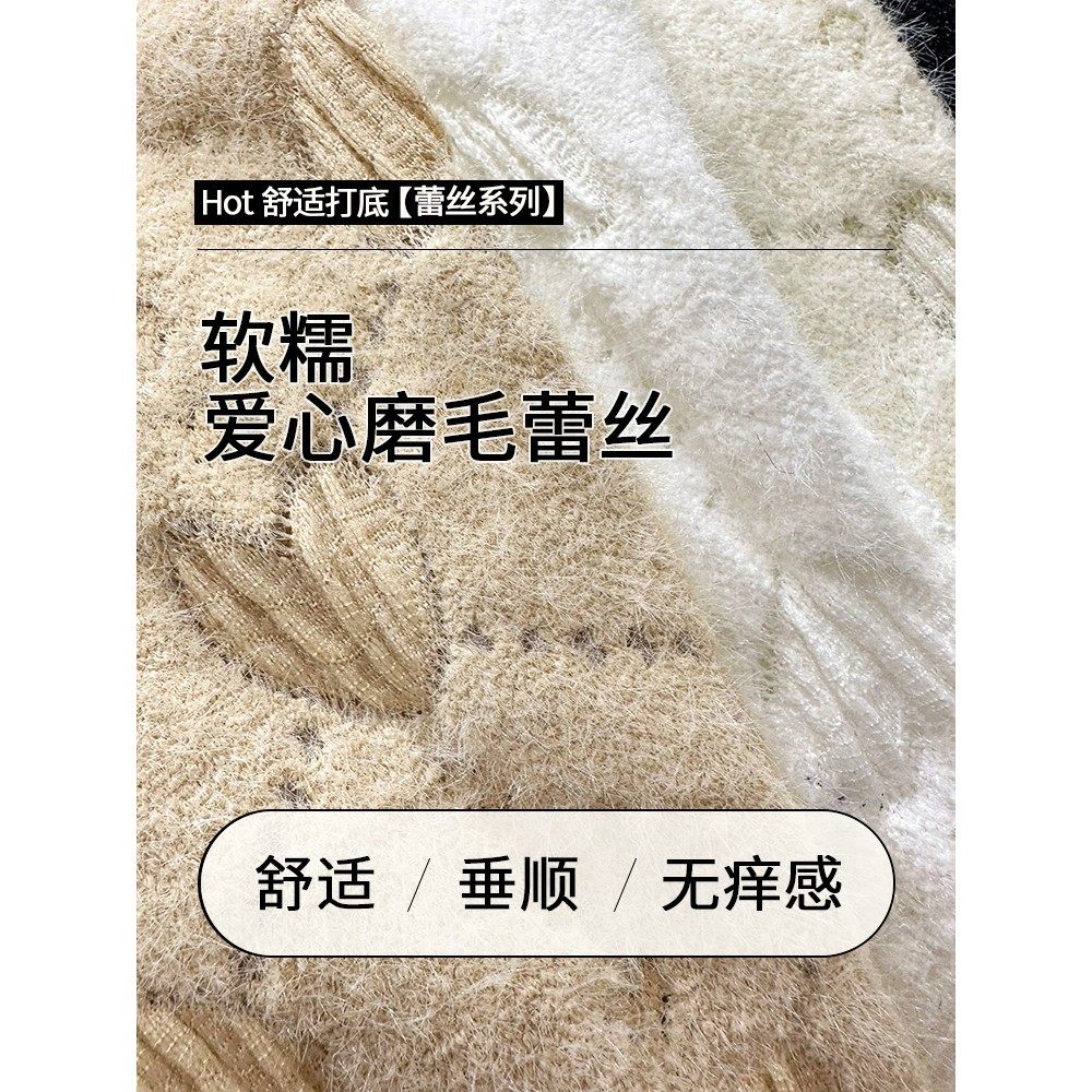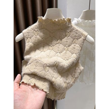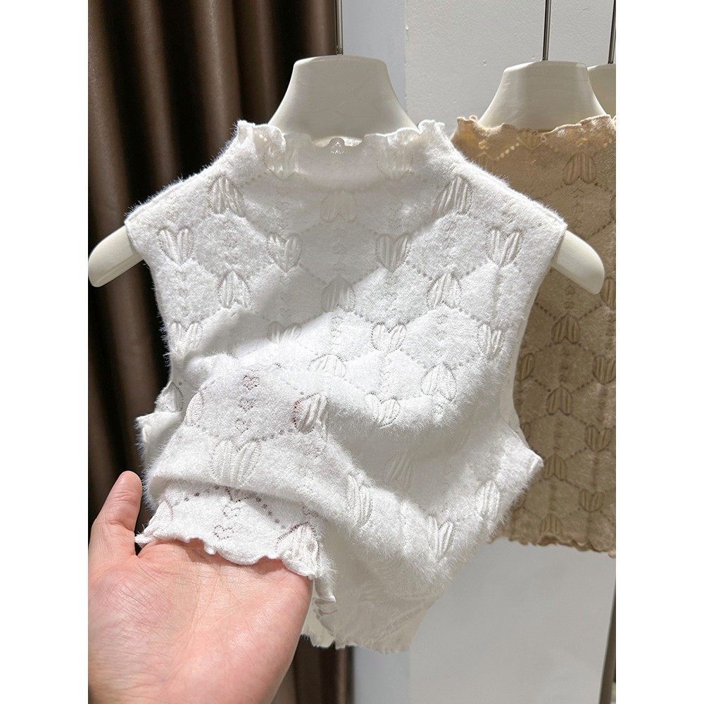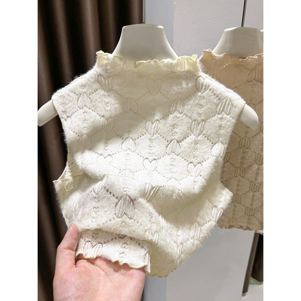 2024新款半高领蕾丝打底衫女秋冬短款内搭磨毛薄绒花边背心假领子
