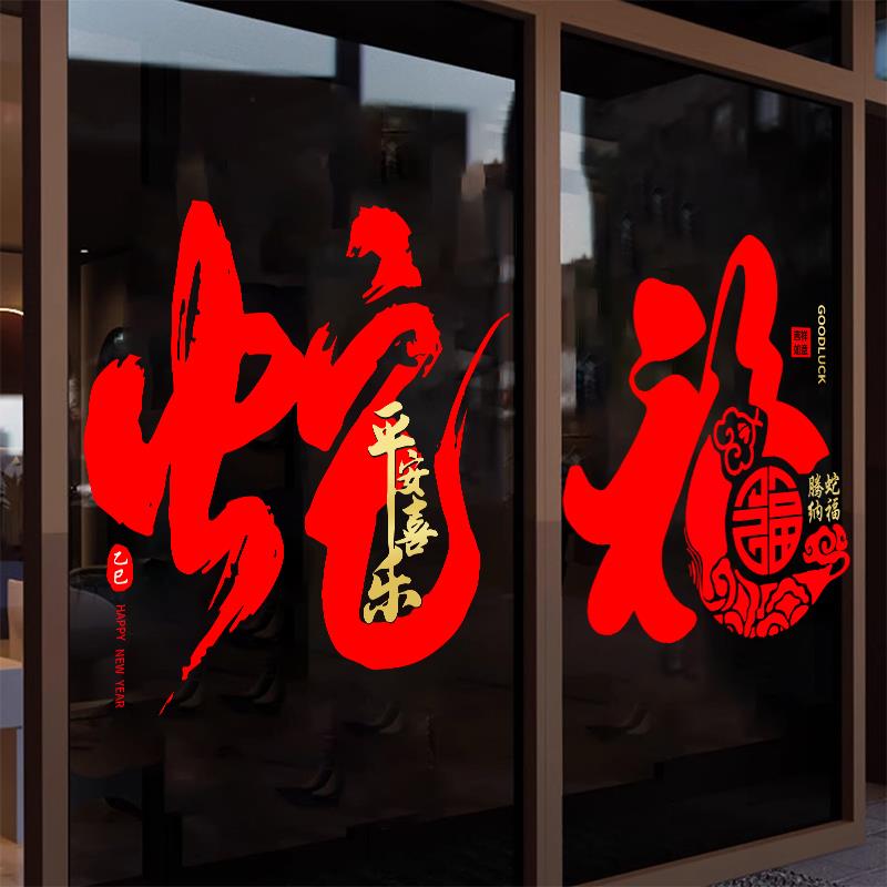 2025新年装饰蛇年玻璃贴纸银行公司窗贴画春节过年福字静电门贴