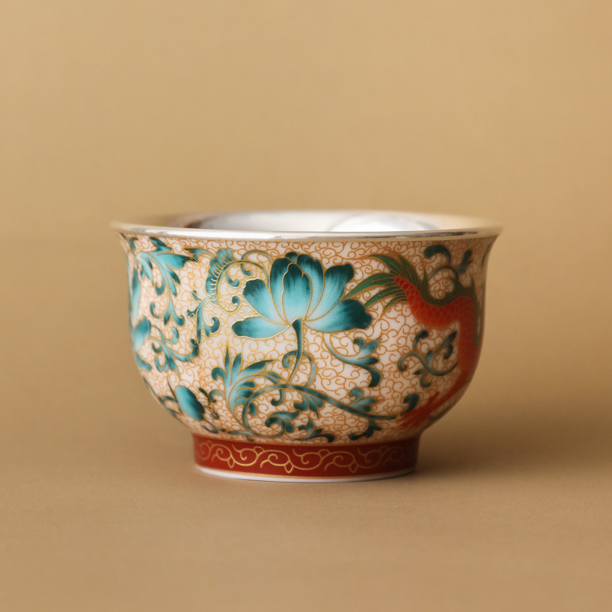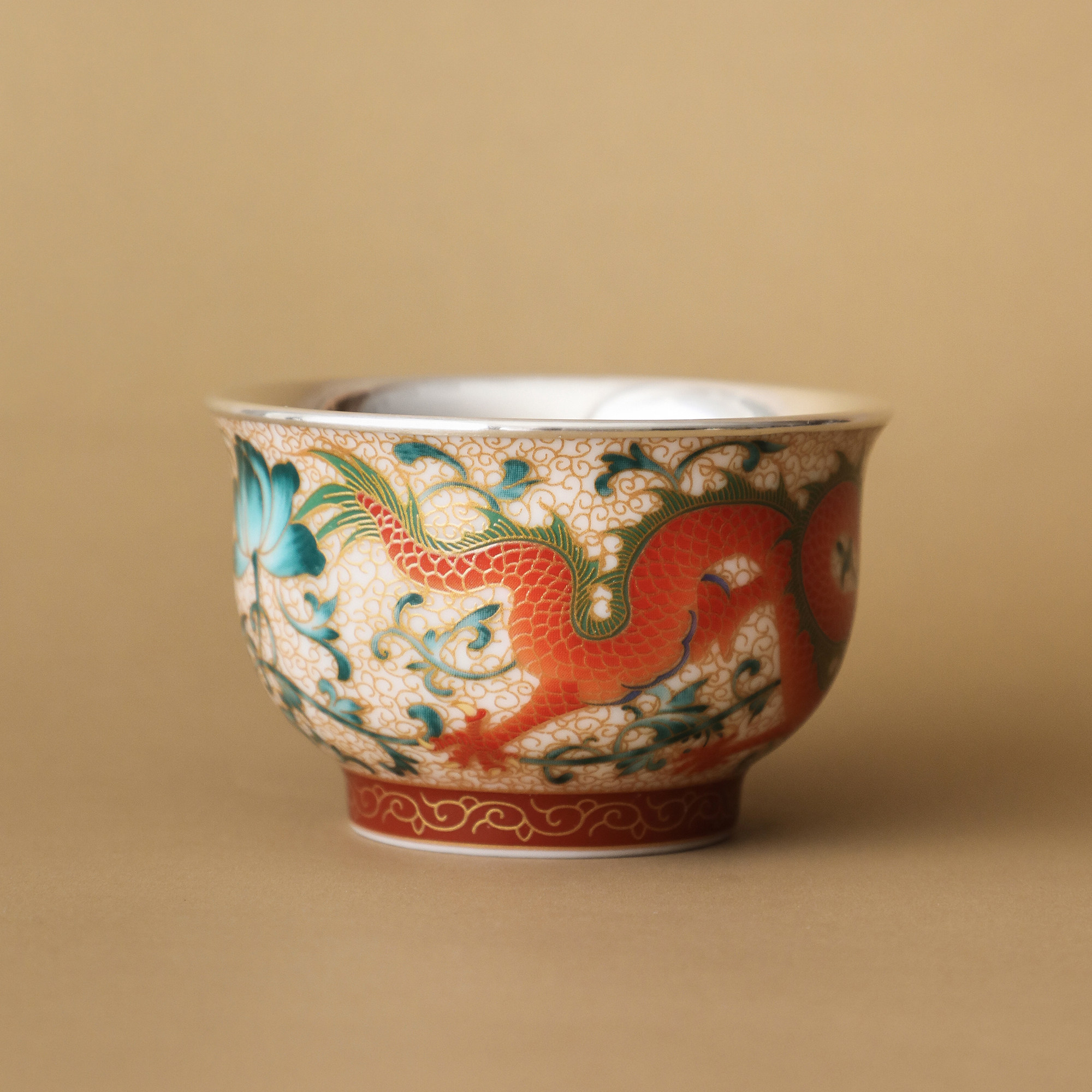 纯银时代彩龙瓷包银杯高端主人杯