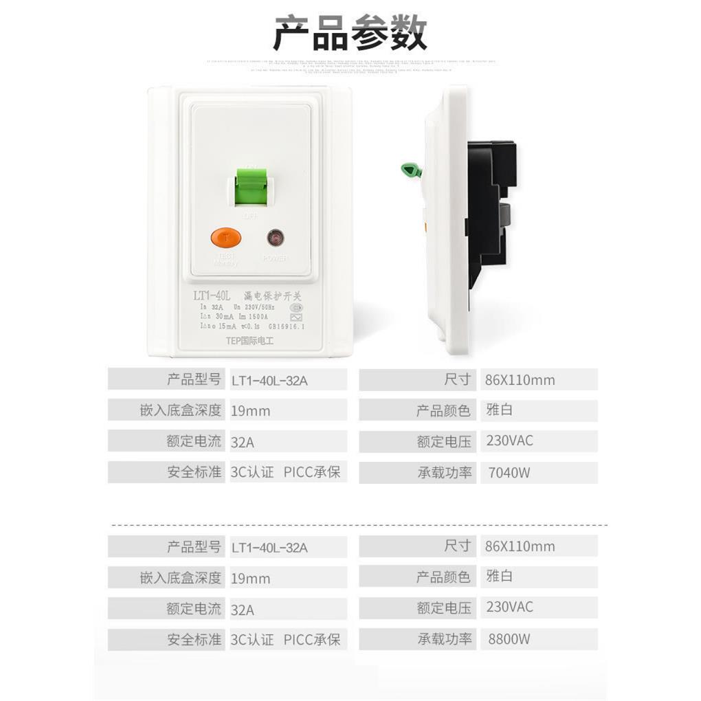 32A家用空调柜机漏电保护器电热水器空气开关断路器40A插座插头