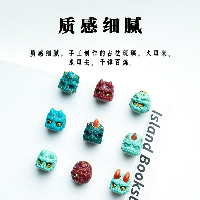 雪巴琉璃阿呆独角兽恶魔萌宠隔珠星月菩提文玩手串配珠DIY配饰品
