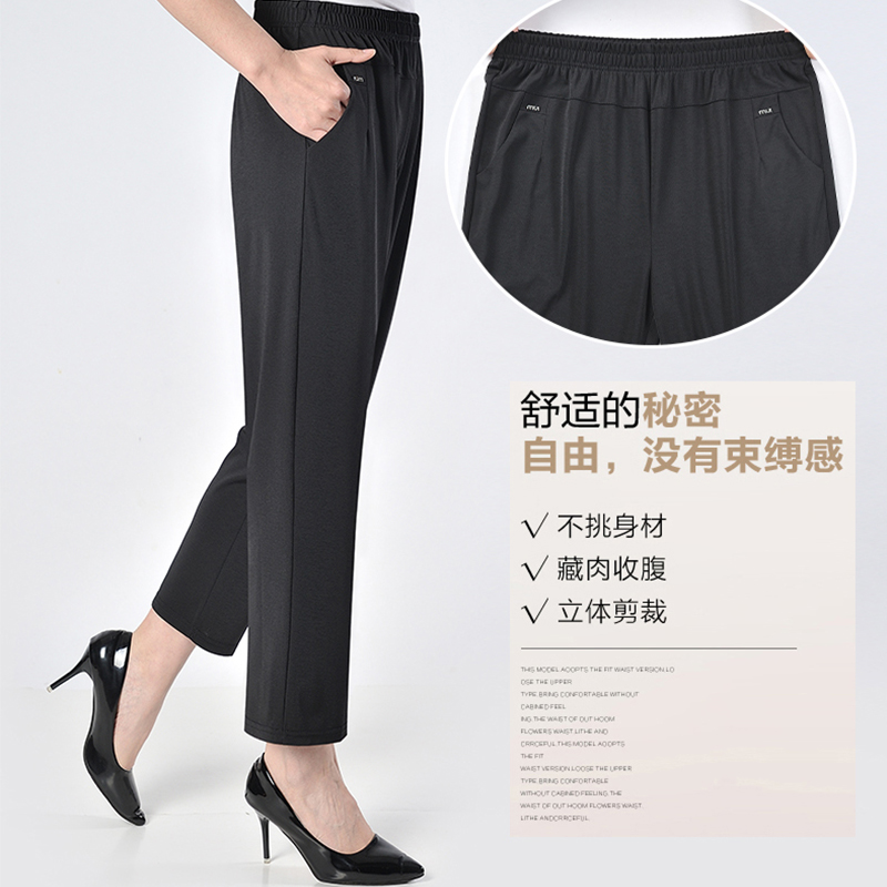 妈妈裤子夏季薄款松紧腰中老年女裤大码冰丝老人奶奶装九分裤女夏