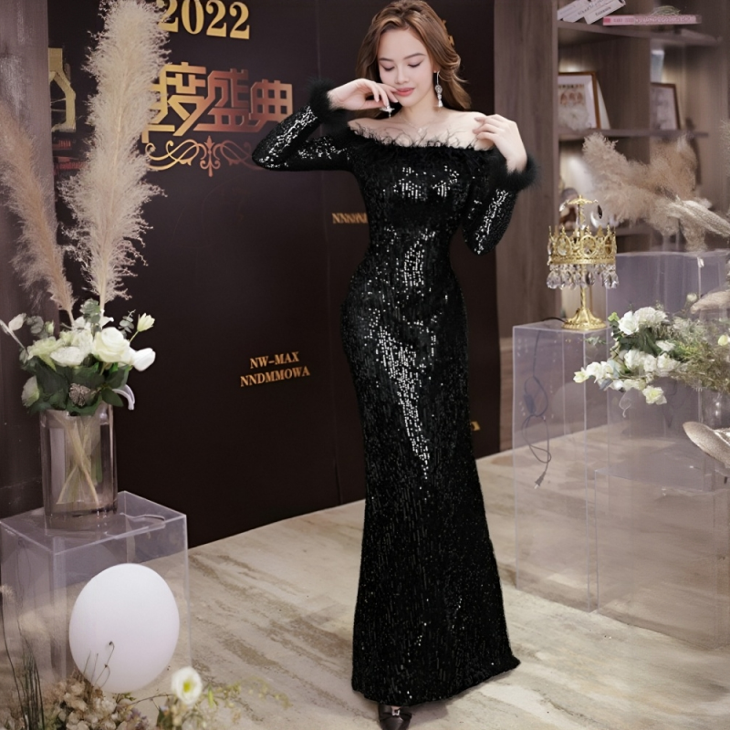 明星同款吊带亮片连衣裙露背性感晚礼服裙生日宴会开叉鱼尾长裙子