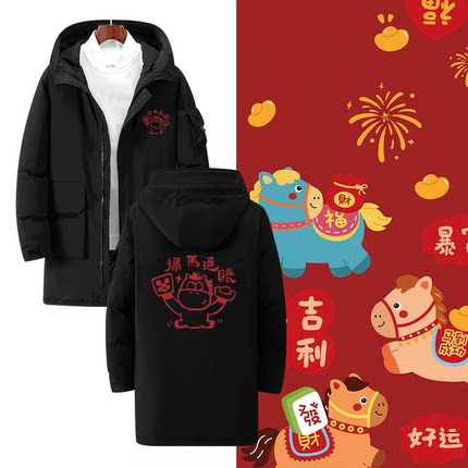 马年国风可定制潮外套带帽拉链羽绒服小马本命年卡通百搭休闲男女