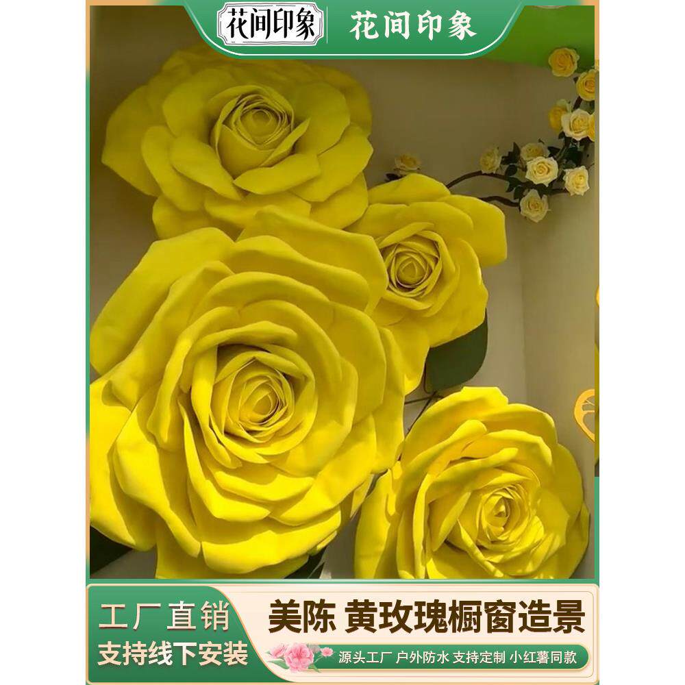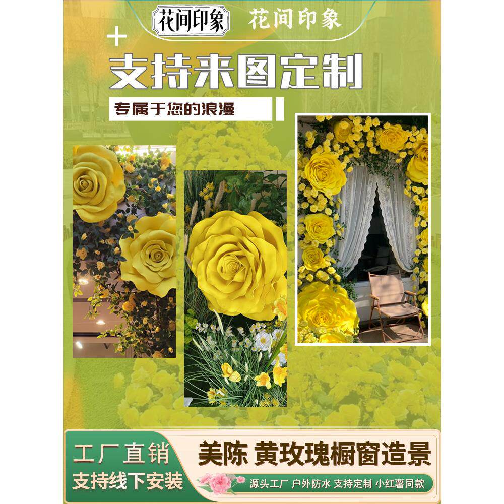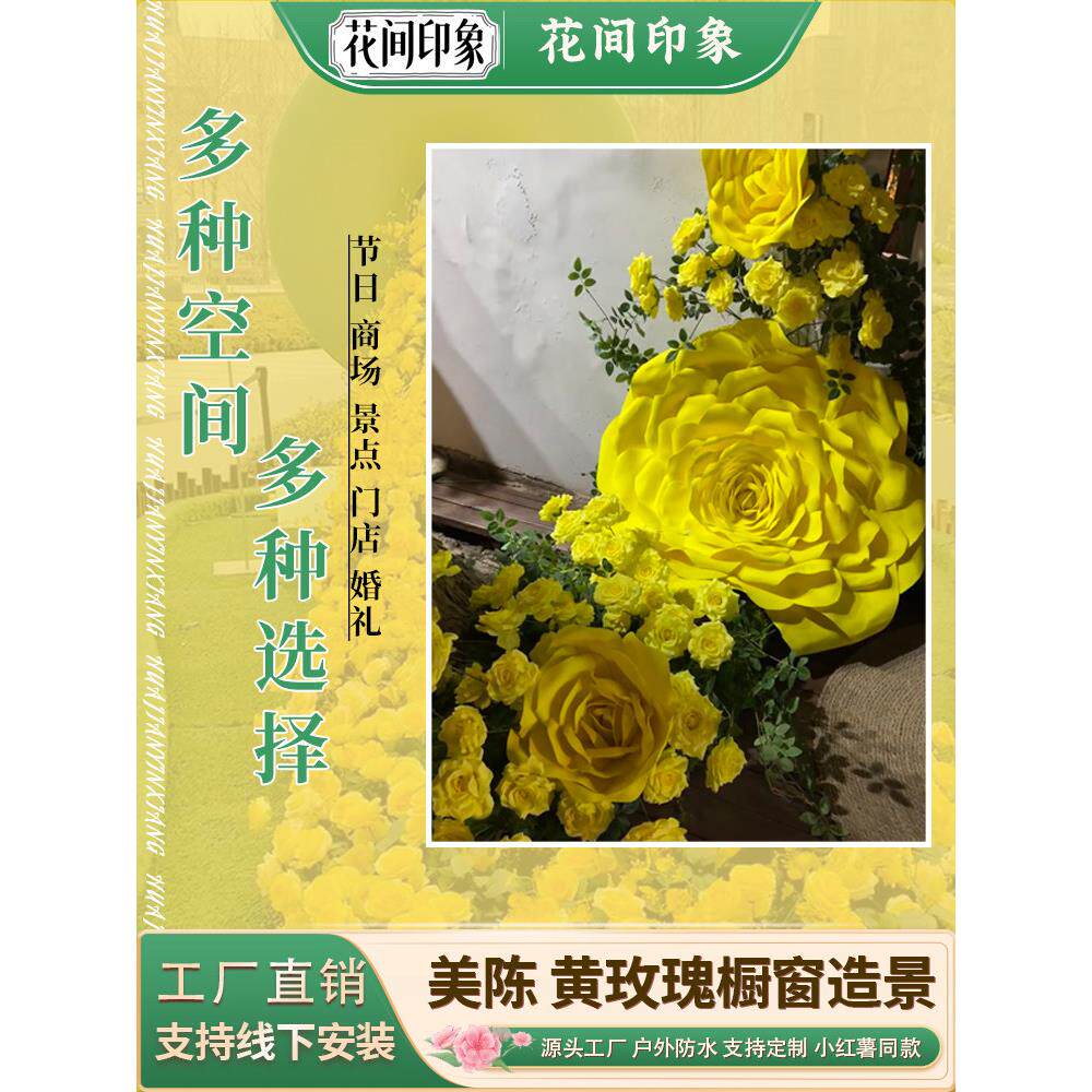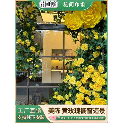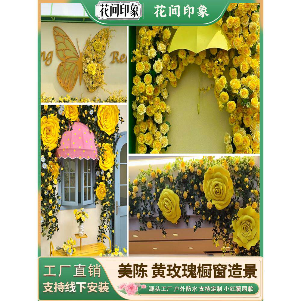 巨型黄色玫瑰假花藤条藤蔓彷真花墙背景橱窗摆件美陈网红打卡造景