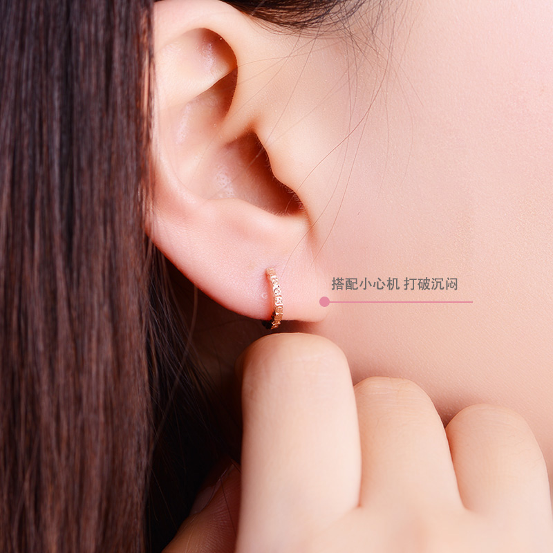 老庙黄金彩金18K金批花耳圈玫瑰金耳环耳扣送礼正品情侣