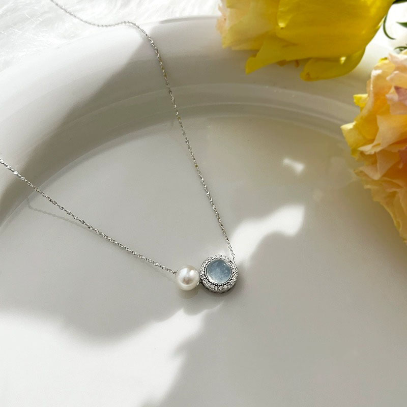 仿海蓝宝珍珠项链女款2025新款轻奢小众锁骨链高级感简约百搭颈链