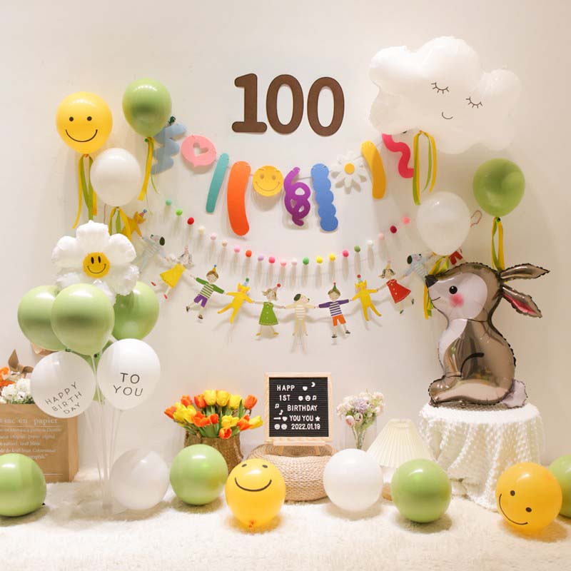 森系生日装饰宝宝百天百日宴100天纪念气球场景布置背景墙周岁女1