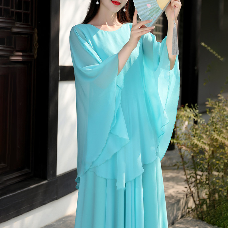 2025春夏新款超仙时尚新中式国风真丝桑蚕丝连衣裙假两件拍照长裙