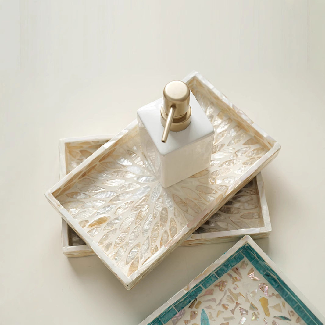 高级感轻奢天然贝壳托盘家用客厅茶几茶盘高级感餐桌收纳置物果盘
