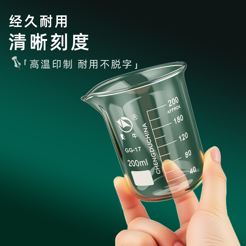 蜀牛大小玻璃烧杯25 50 100 250 500 1000ml耐高温带刻度家用量杯