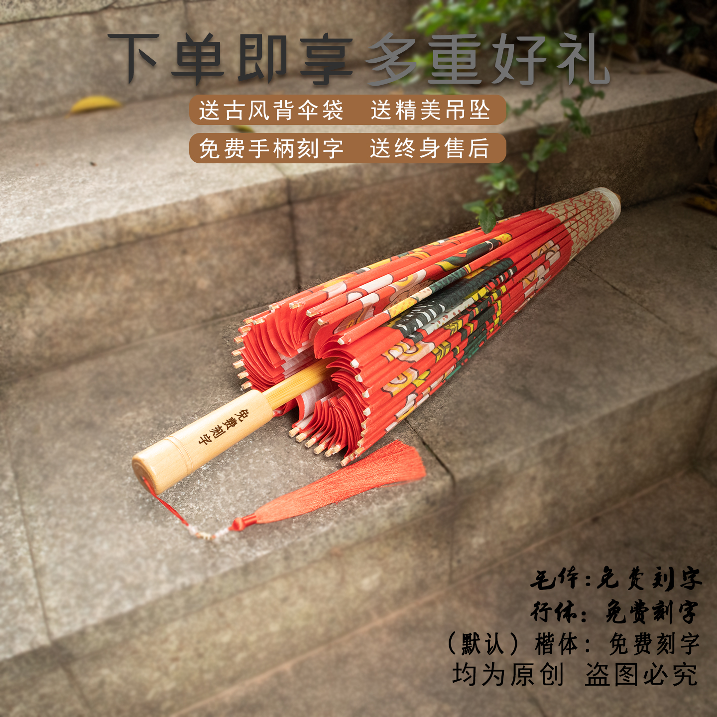 传统龙凤呈祥喜庆婚伞 非遗中国风古典传统手工防雨遮阳防晒竹伞
