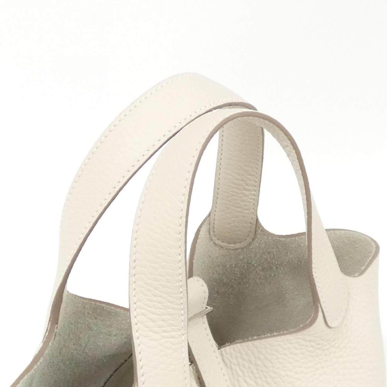 中古Hermes爱马仕女包A级95新picotinPM菜篮子奶昔白TC皮手提包