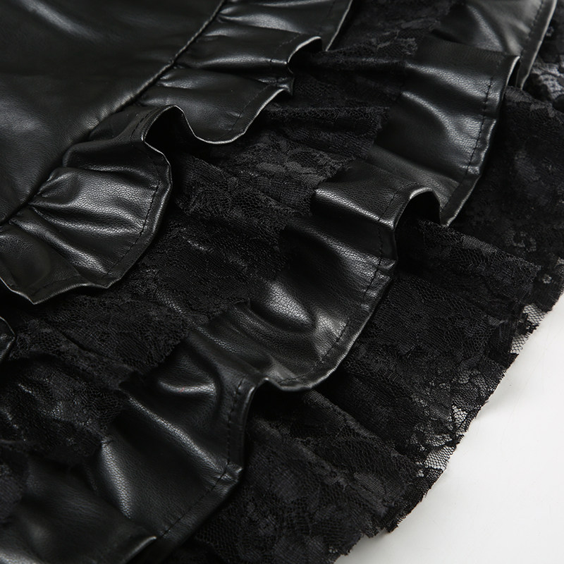 朋克亚比暗黑风蕾丝拼接PU半身裙