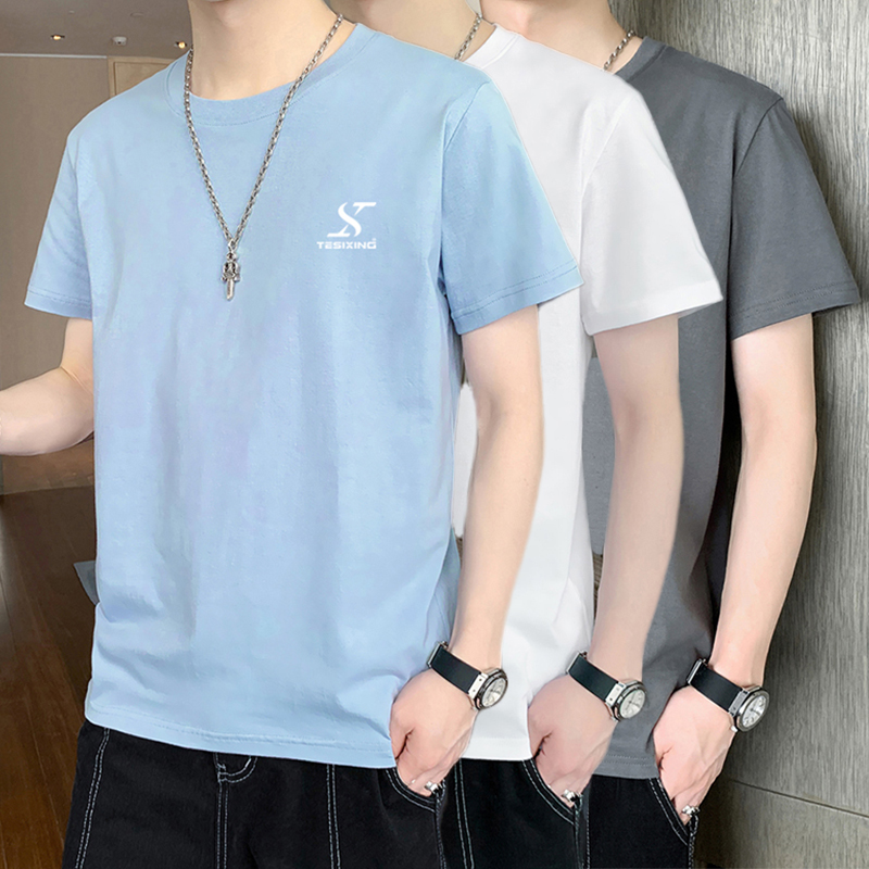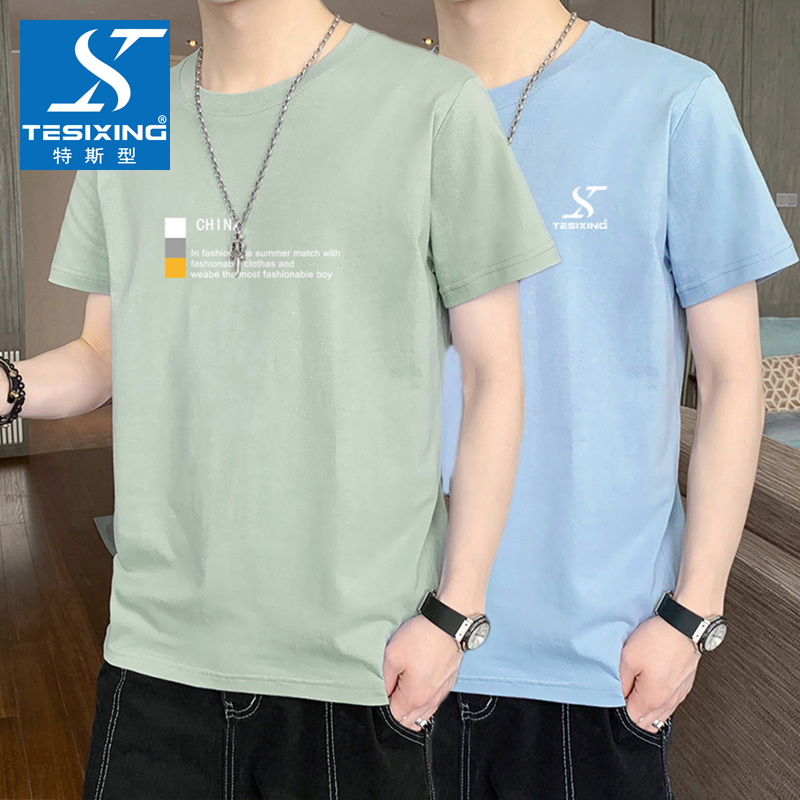 以纯YISHION纯棉t恤男夏季薄款圆领印花短袖上衣宽松休闲男士体恤