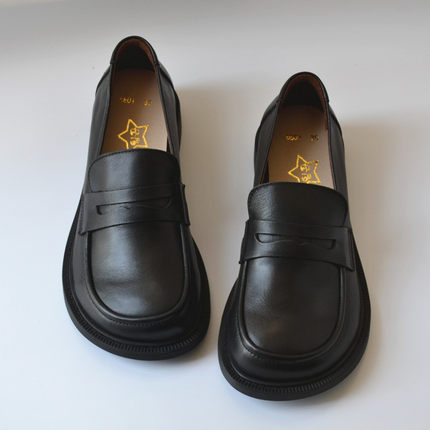 真皮英伦小皮鞋头层牛皮大头鞋宽松工作鞋一脚蹬复古文艺女鞋外贸
