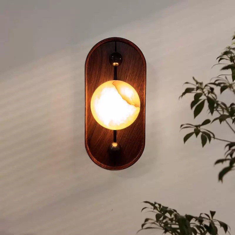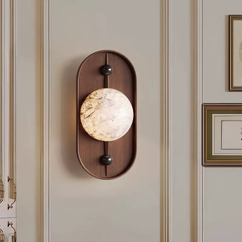 新中式云石壁灯复古设计师客厅y卧室民宿装饰中古酒店床头过道灯