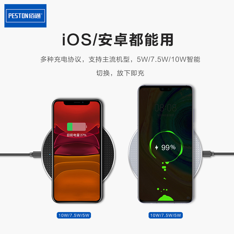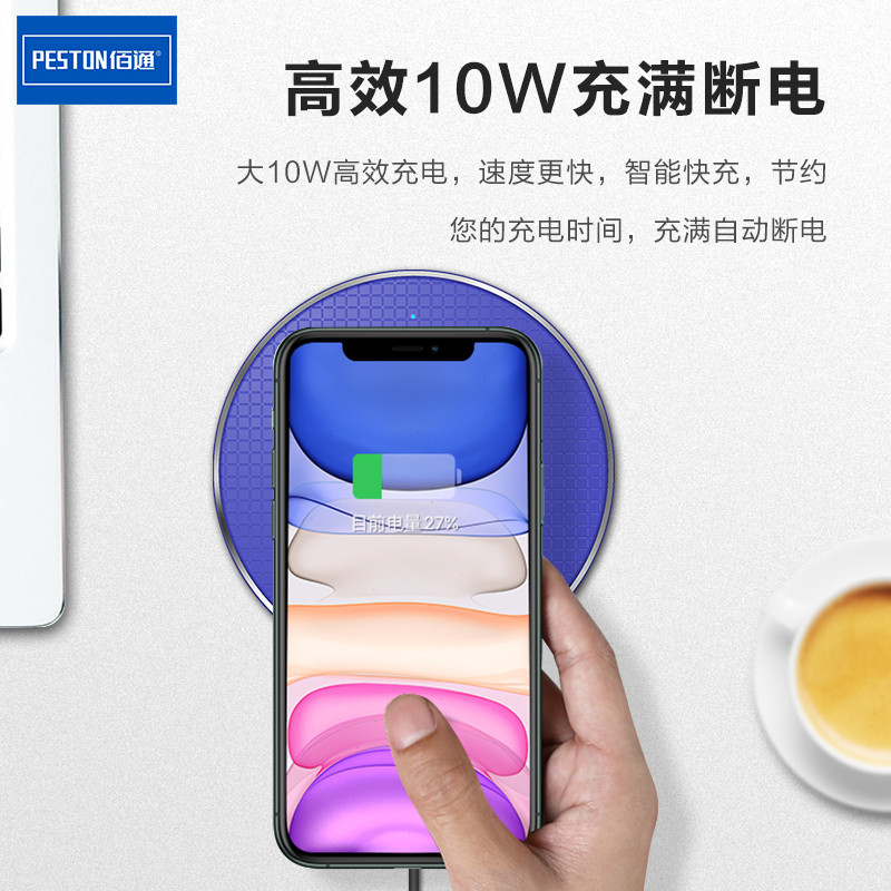 佰通无限充电S10手机通用10W快充金属无线充电器适用于iPhone14 13 12 11 XsPromax高速智能轻薄桌面便携充电