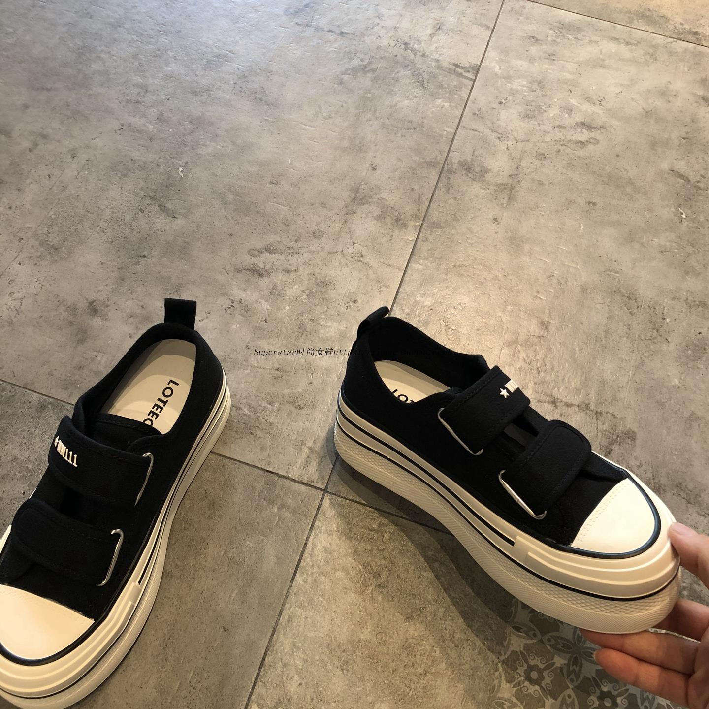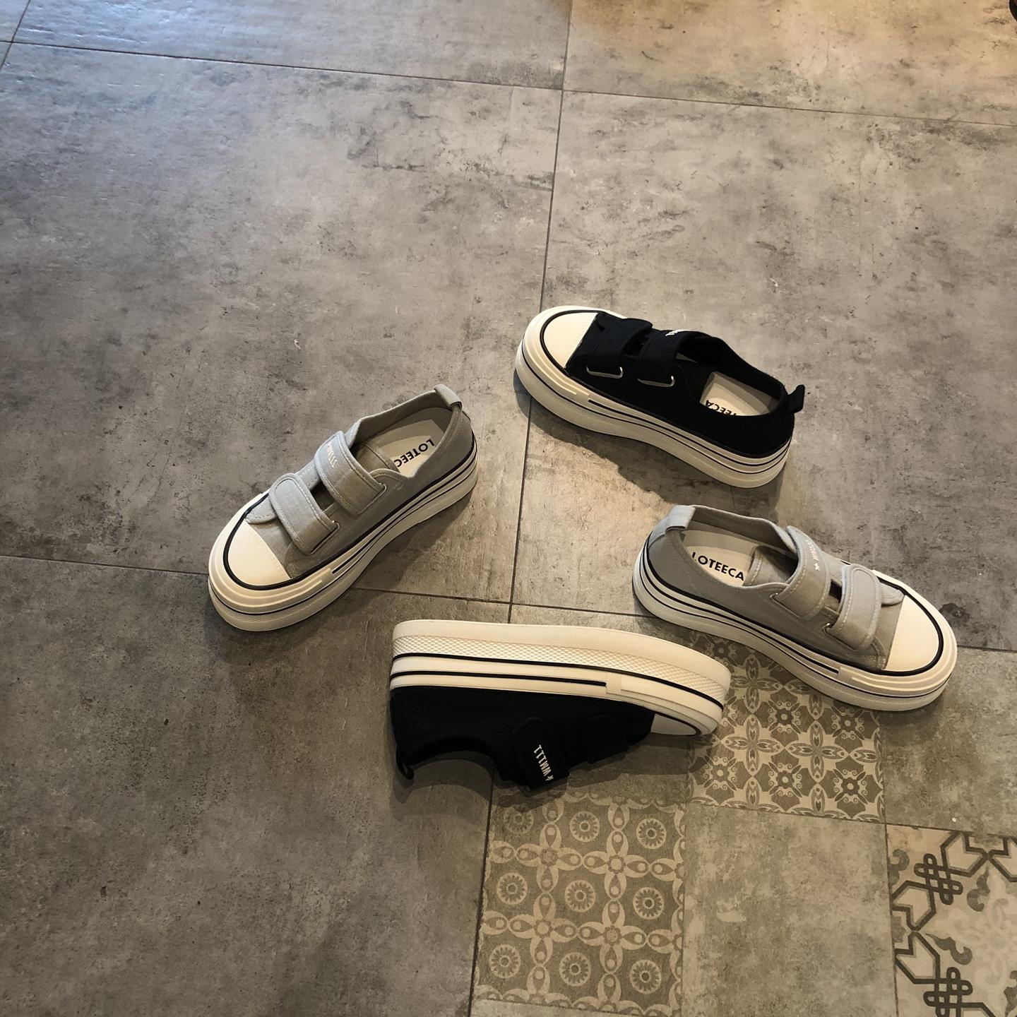 2025新款时尚百搭圆头魔术贴厚底舒适休闲鞋运动鞋板鞋轻便帆布鞋