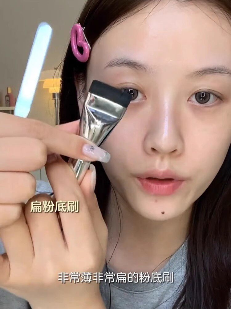 wakemake平替!扁头粉底刷不吃粉化妆刷无痕平头超薄一字型面膜刷