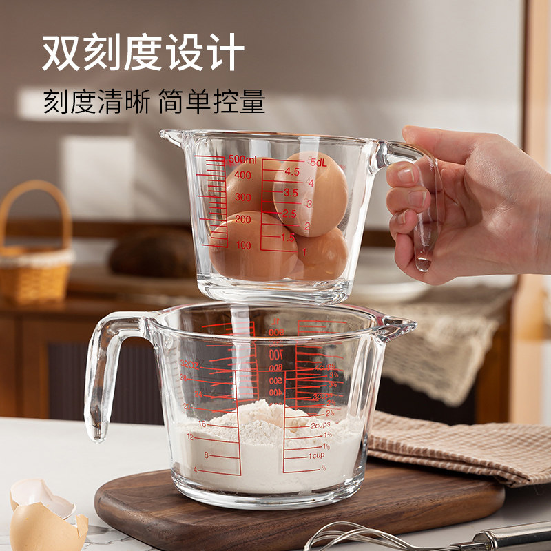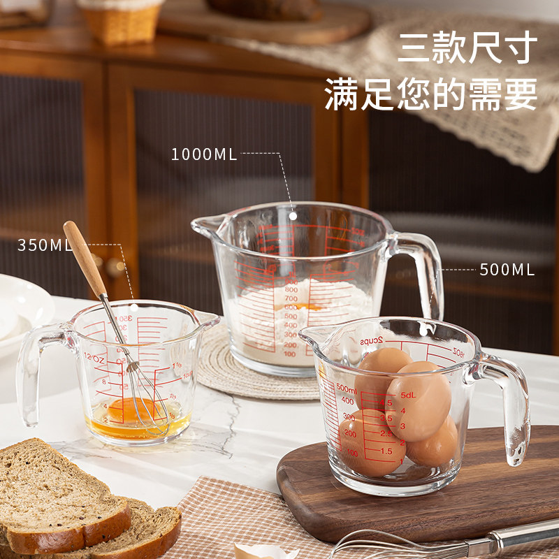 家用玻璃量杯带刻度加厚容器打鸡蛋液杯大容量面粉计量杯MLU