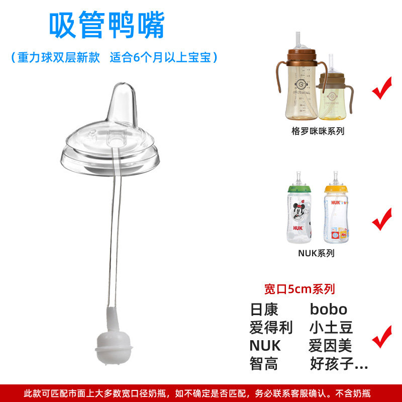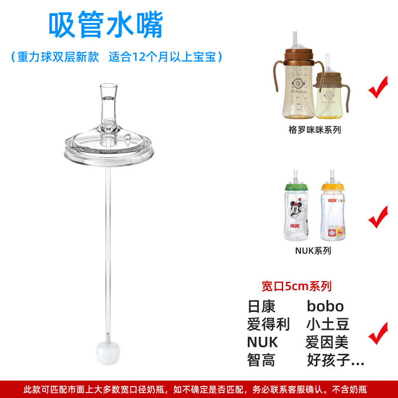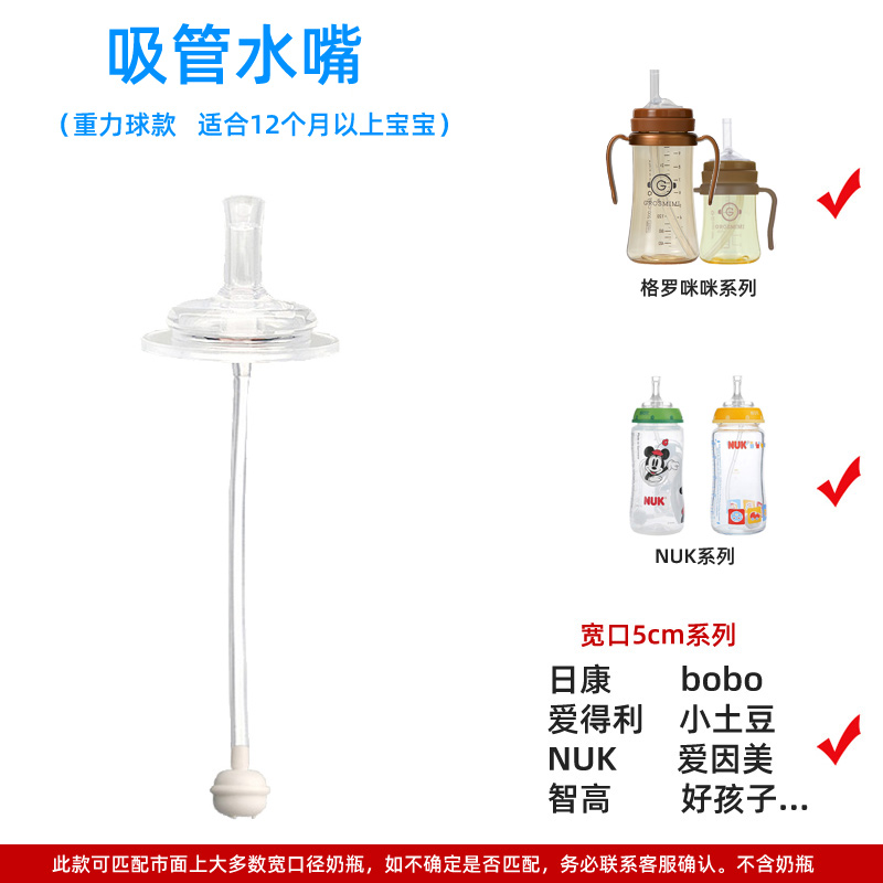 适配NUK学饮杯奶嘴转换吸管吸嘴头重力球智高宽口径奶瓶格罗咪咪