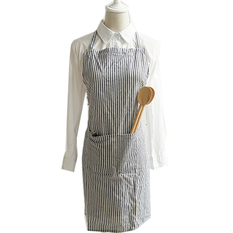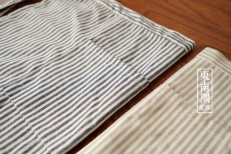 东南隅手作半身围裙 男女双面色织棉麻条纹日系清新男女半身围裙