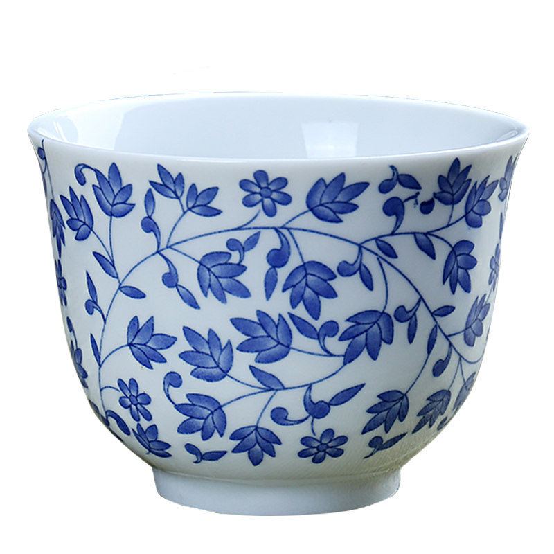 高白瓷大号茶杯主人杯会客杯复古青花瓷120毫升2两酒杯客厅喝水杯