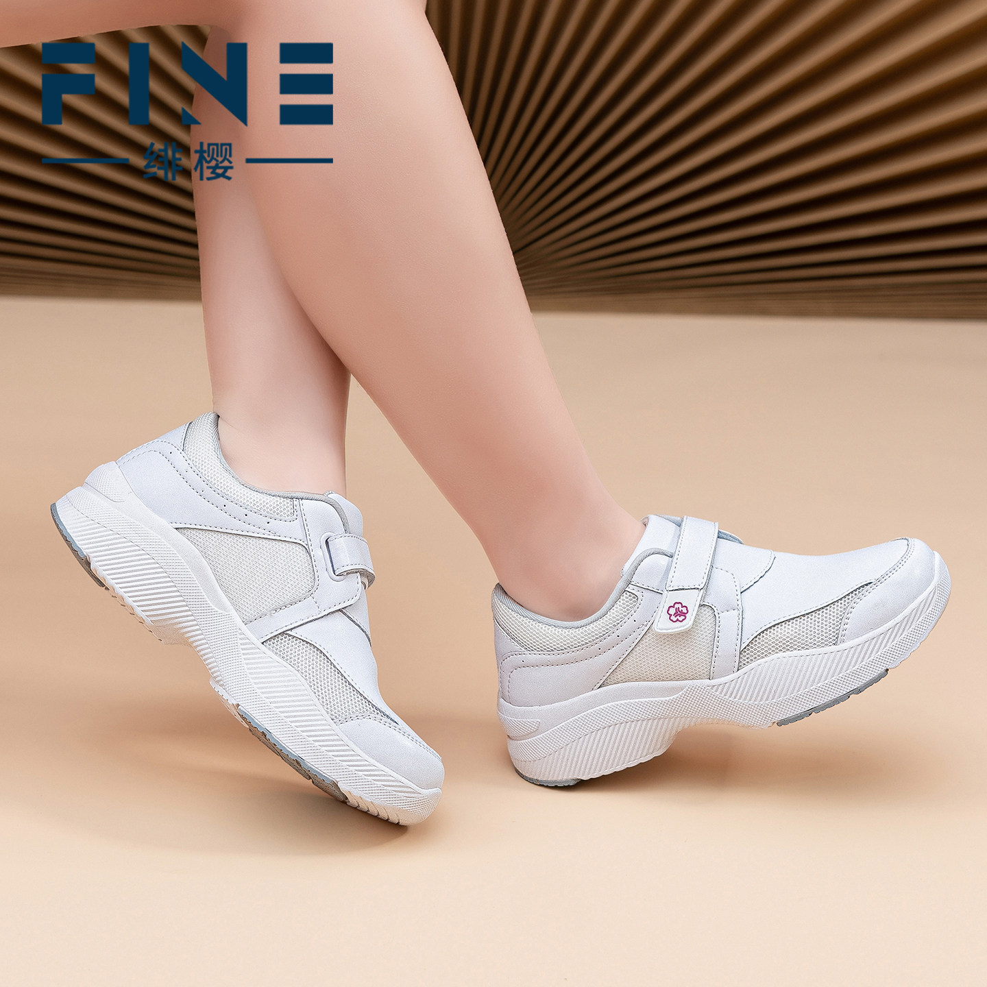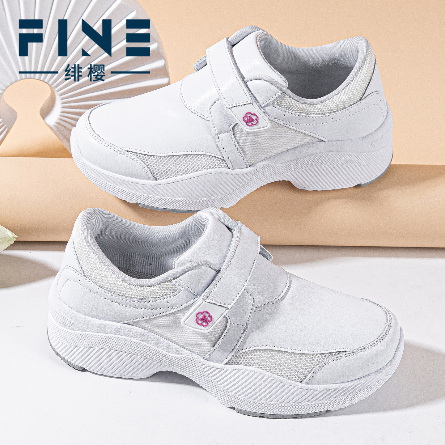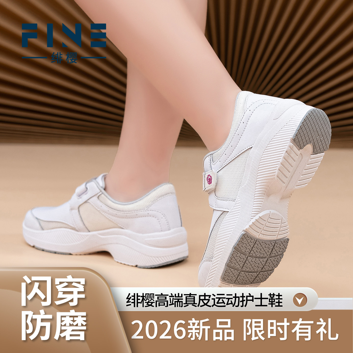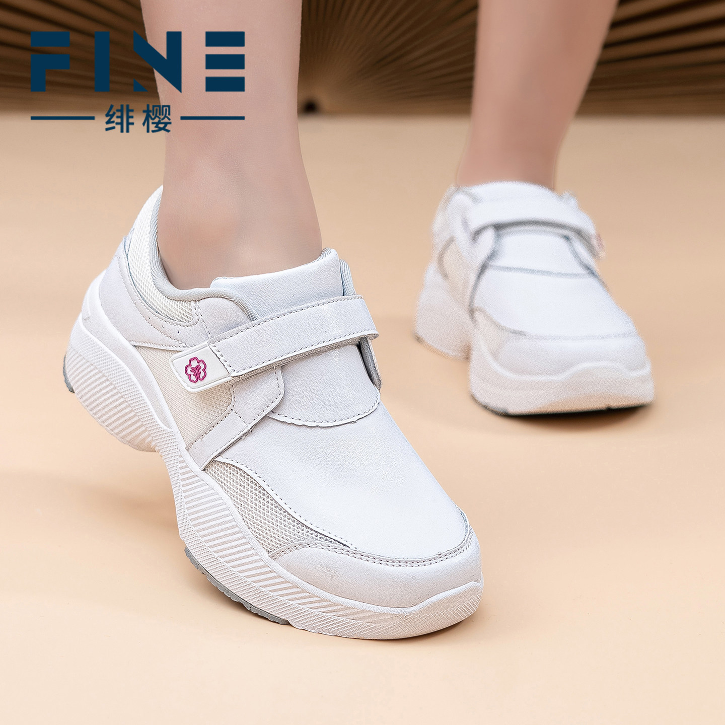 绯樱足弓支撑运动护士鞋软底不累脚防水牛皮白色透气医护工作鞋女