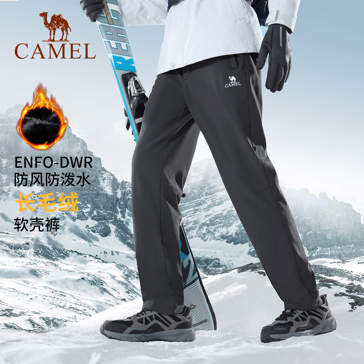 骆驼运动软壳裤男女情侣2025冬季新款防风防泼水户外徒步登山裤