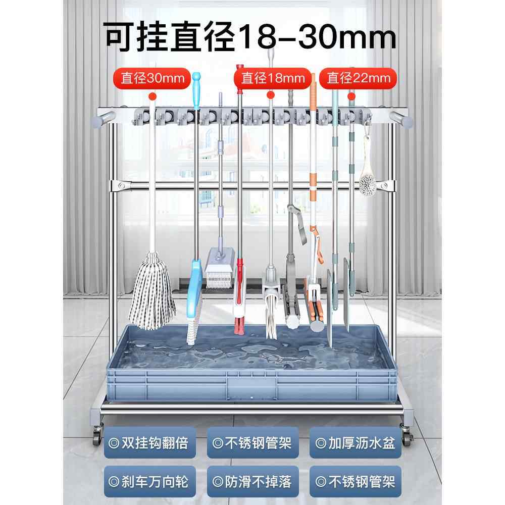 移动落地式拖把架不锈钢置物架墩布扫把架清洁工具收纳扫帚夹家用