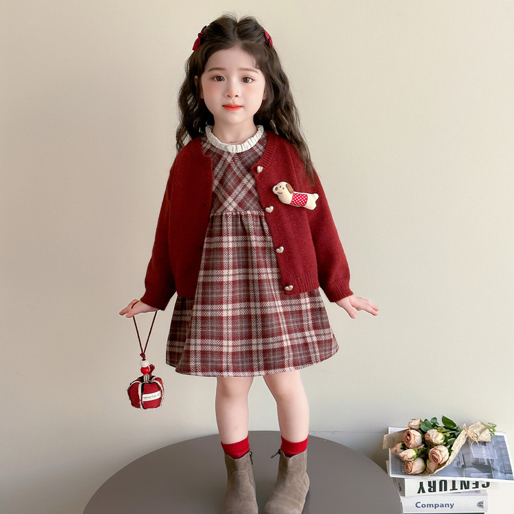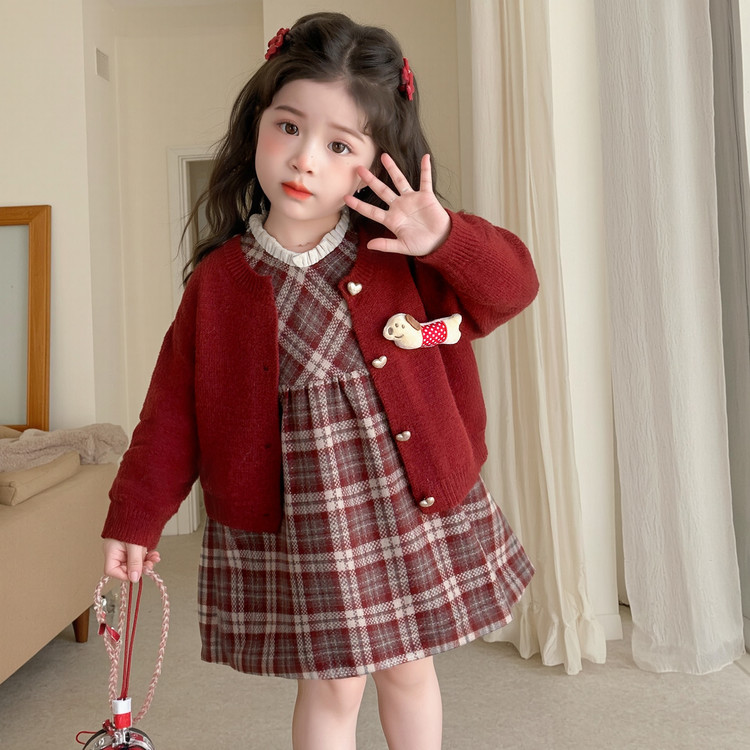 女童连衣裙套春秋季2025新款小女孩宝宝儿童早秋装学院风公主裙子