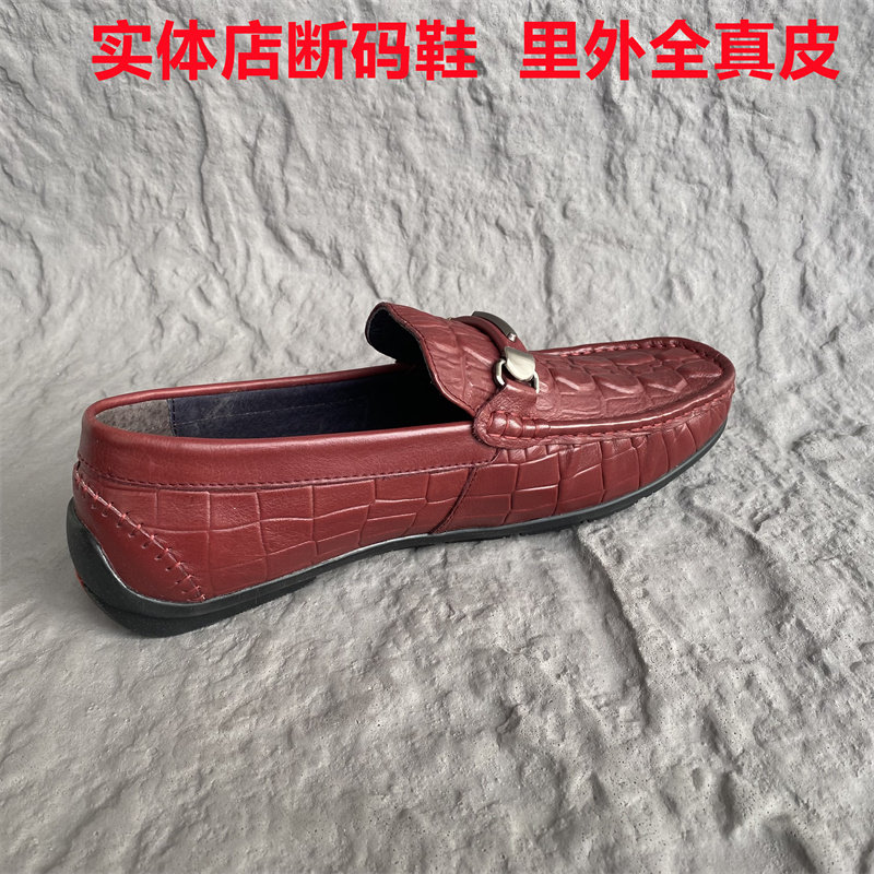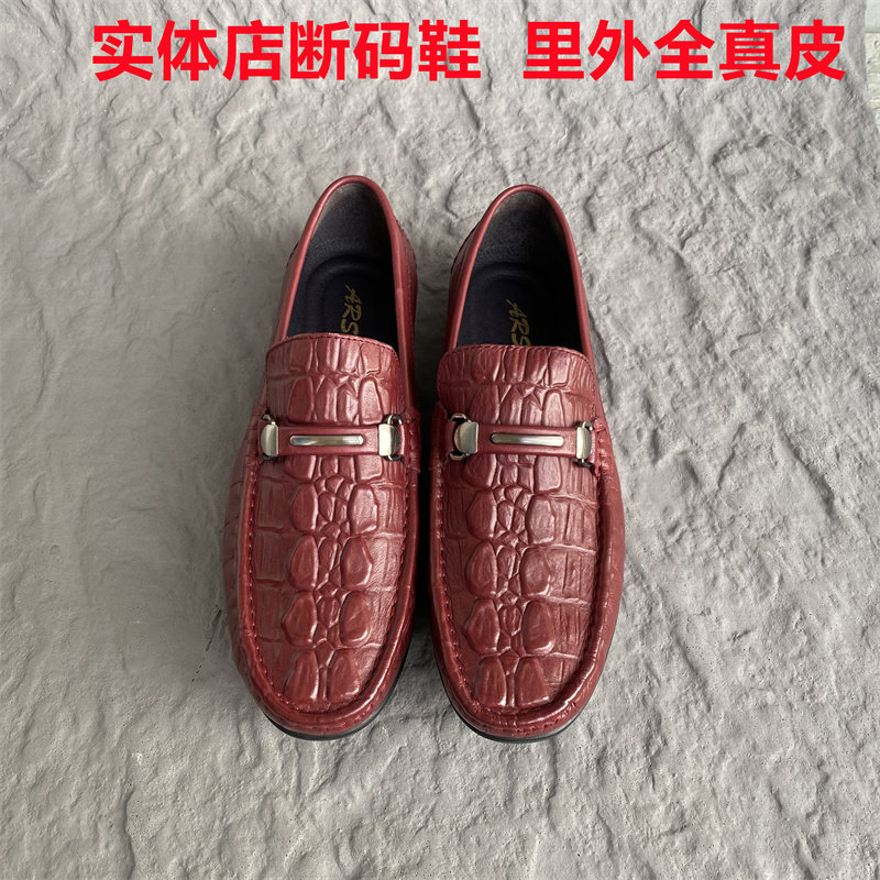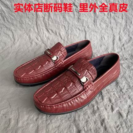 韩版男鞋头层牛皮商务休闲皮鞋一脚蹬鳄鱼纹软底豆豆鞋驾车懒人鞋