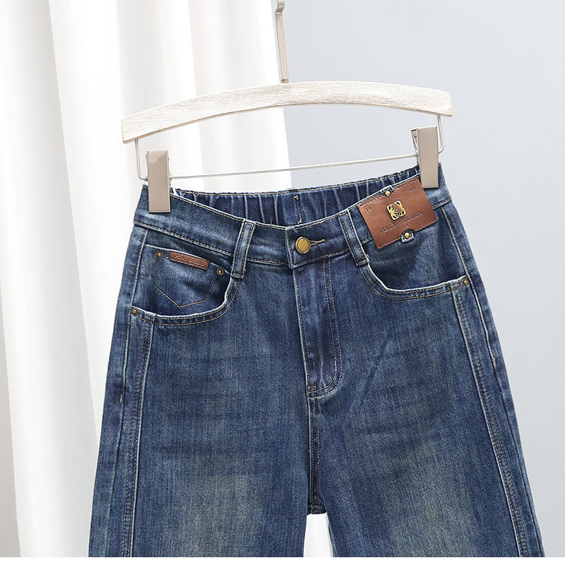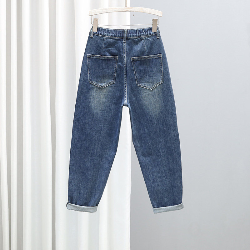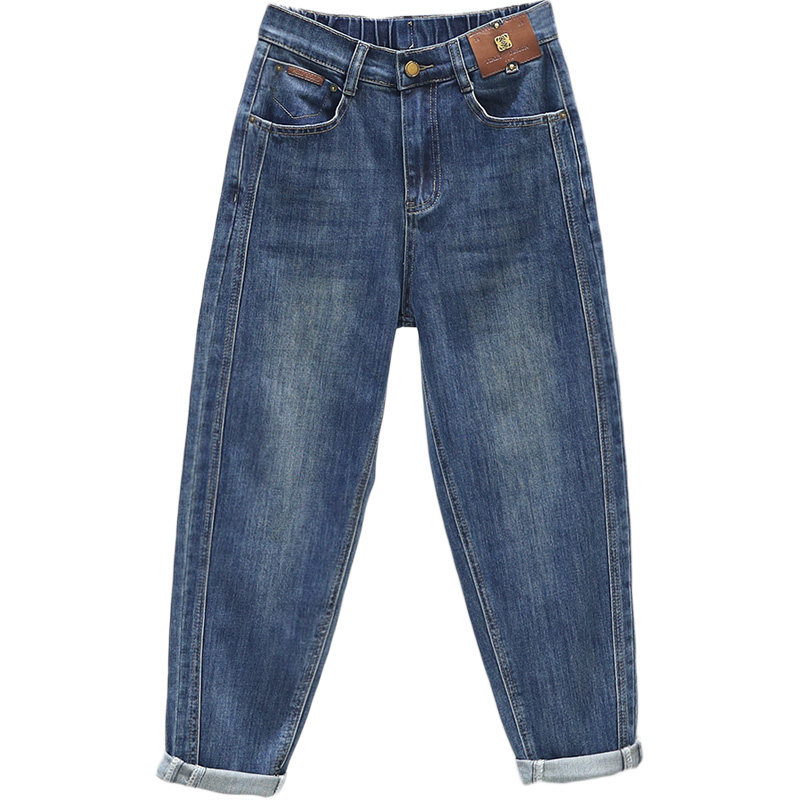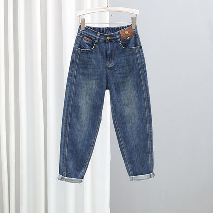 春季新款高腰牛仔裤女2026宽松显瘦哈伦裤半松紧腰百搭9分萝卜裤