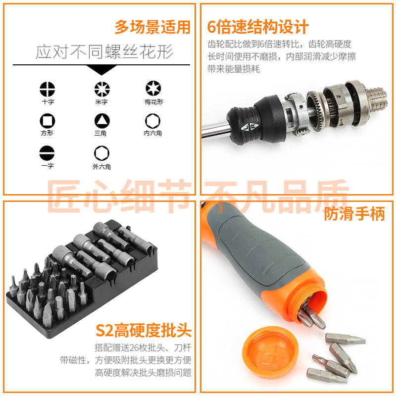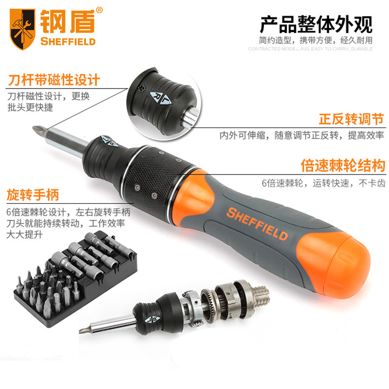 钢盾S056511多功能6倍速棘轮螺丝刀工具套装组合 起子螺丝批