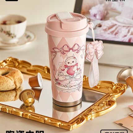 物生物保温水杯女2025新v款咖啡杯陶瓷内胆高颜值外出便携吸管杯