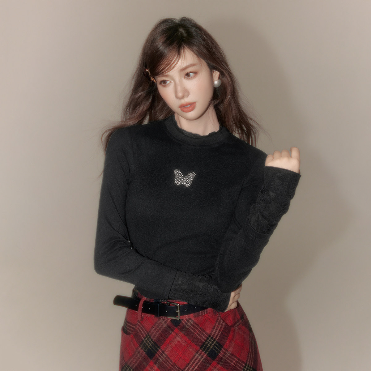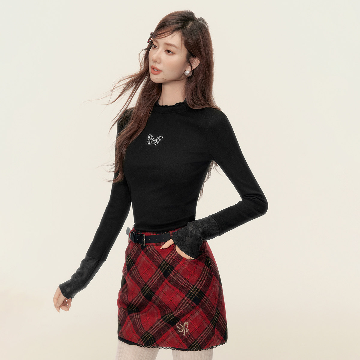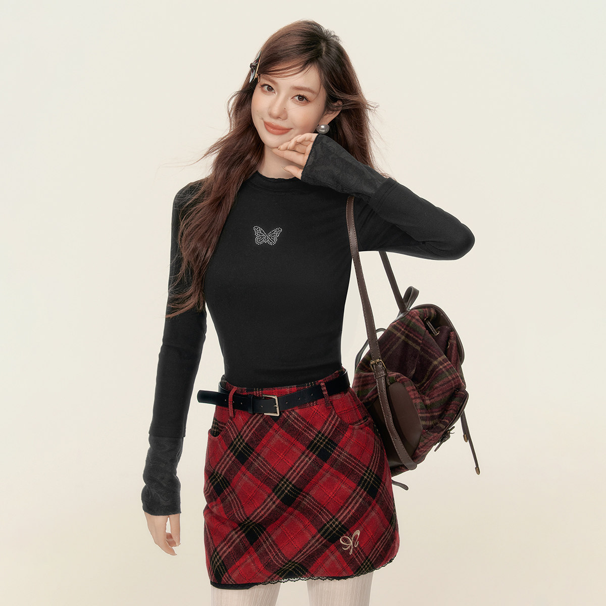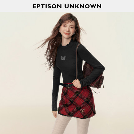 【69/件】EPTISON长袖T恤女2025冬新款甜辣风短款设计感修身上衣