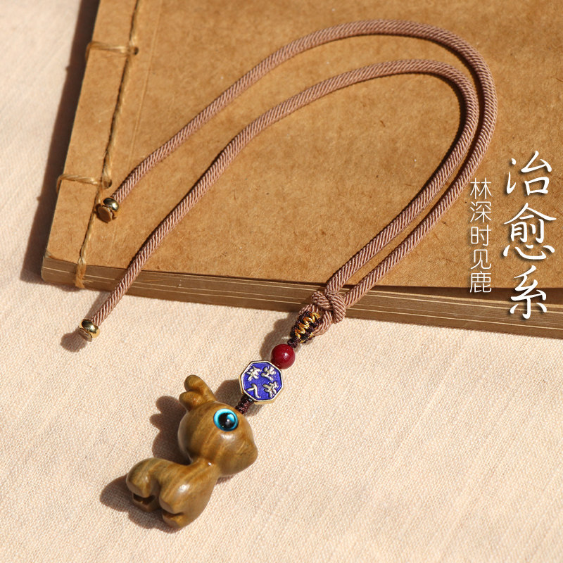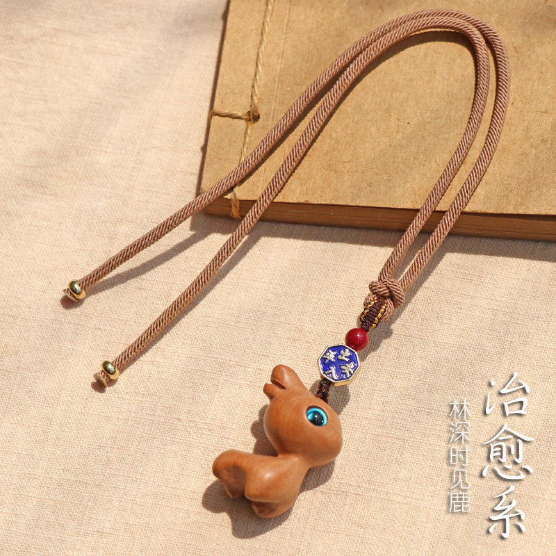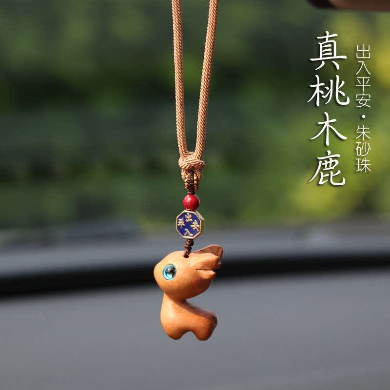 天然桃木鹿出入平安汽车挂件朱砂