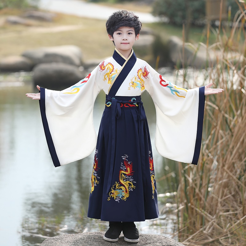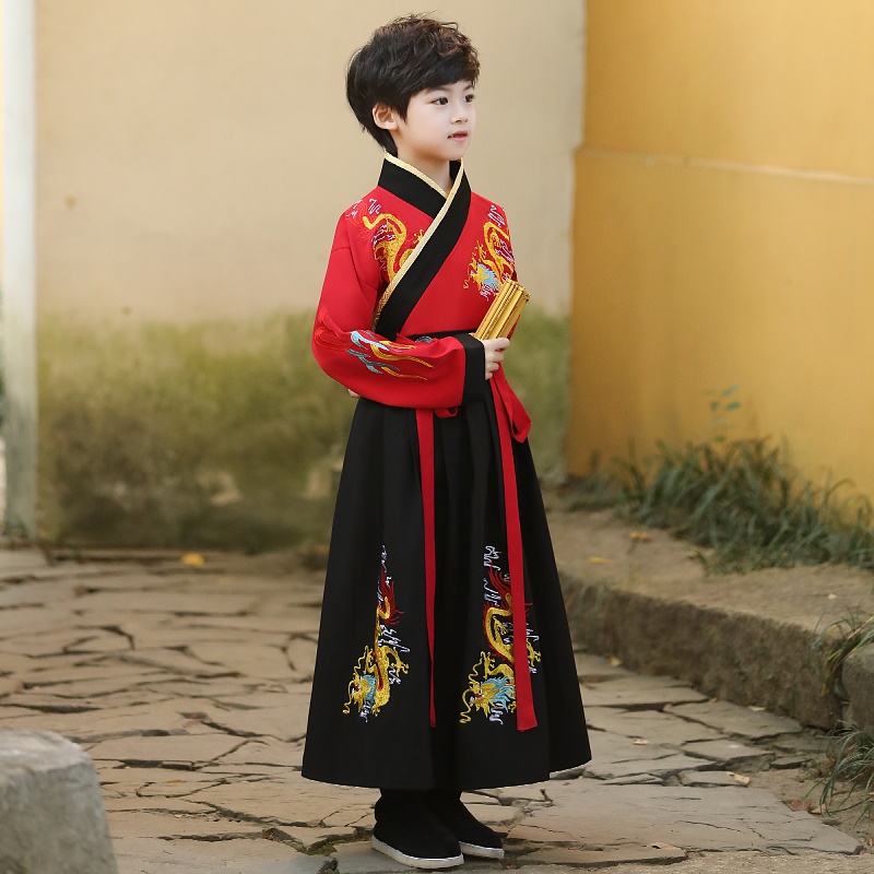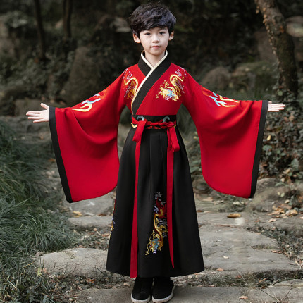 儿童古装汉服男童秋款少爷侠客服古风唐装演出服红色公子2025新款