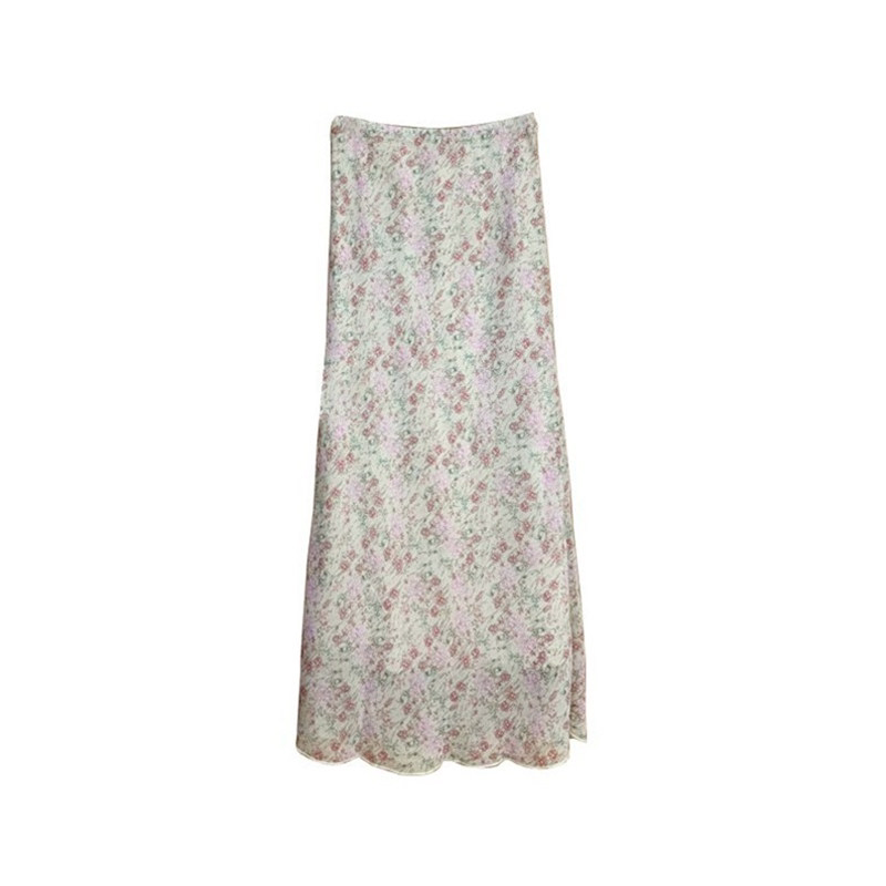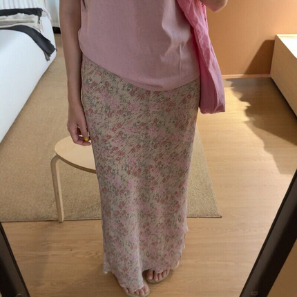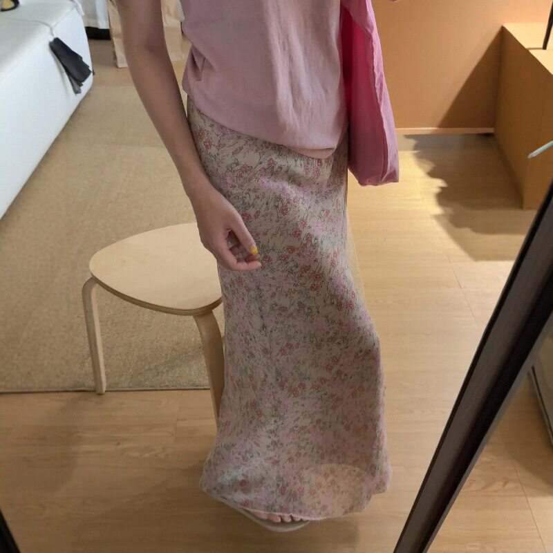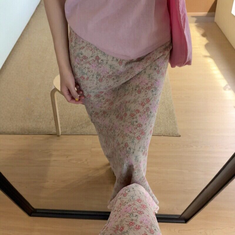 韩系多巴胺粉色碎花半身裙女款春季包臀雪纺裙子大码显瘦直筒长裙