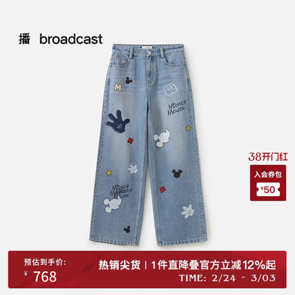 播商场同款迪士尼米奇系列直筒宽松牛仔裤女秋新品BDS3KD3333