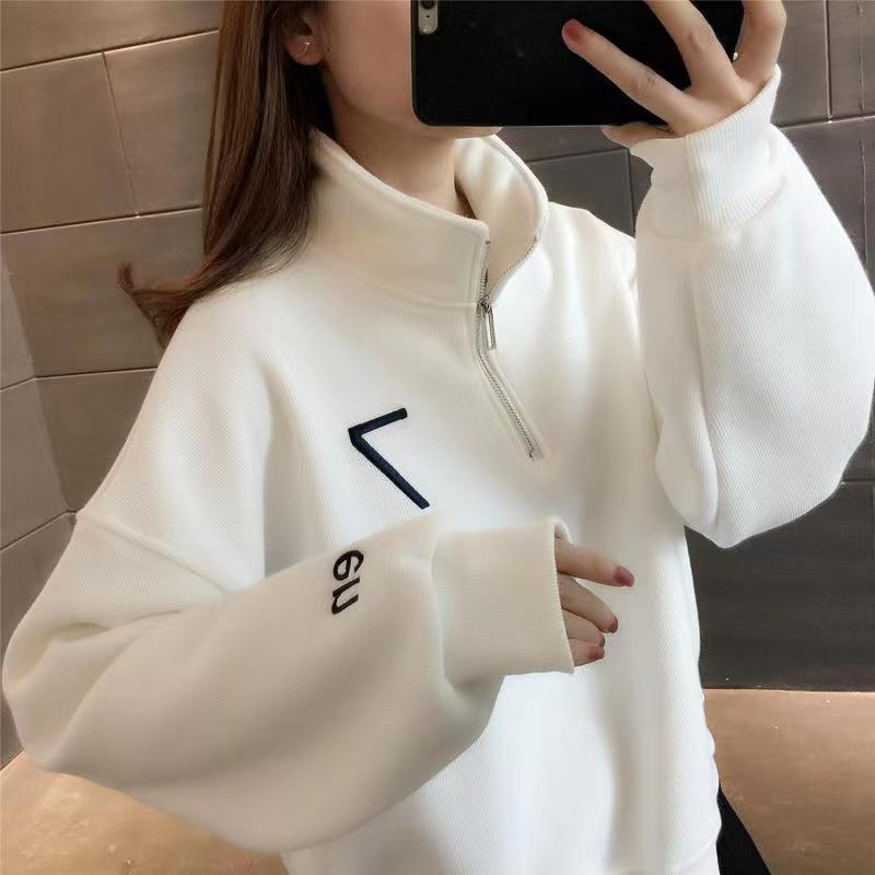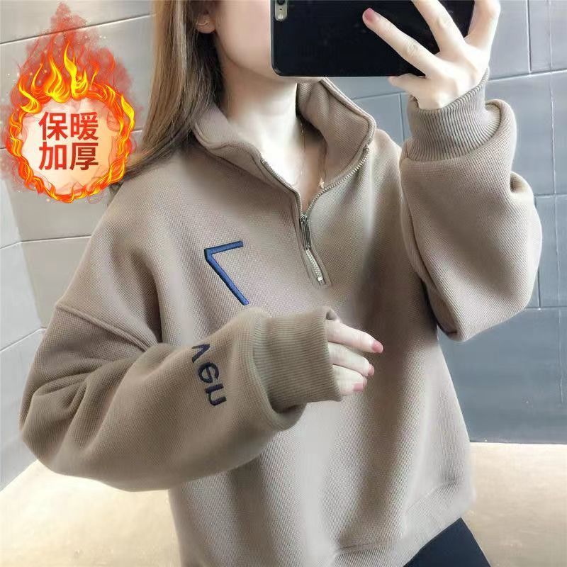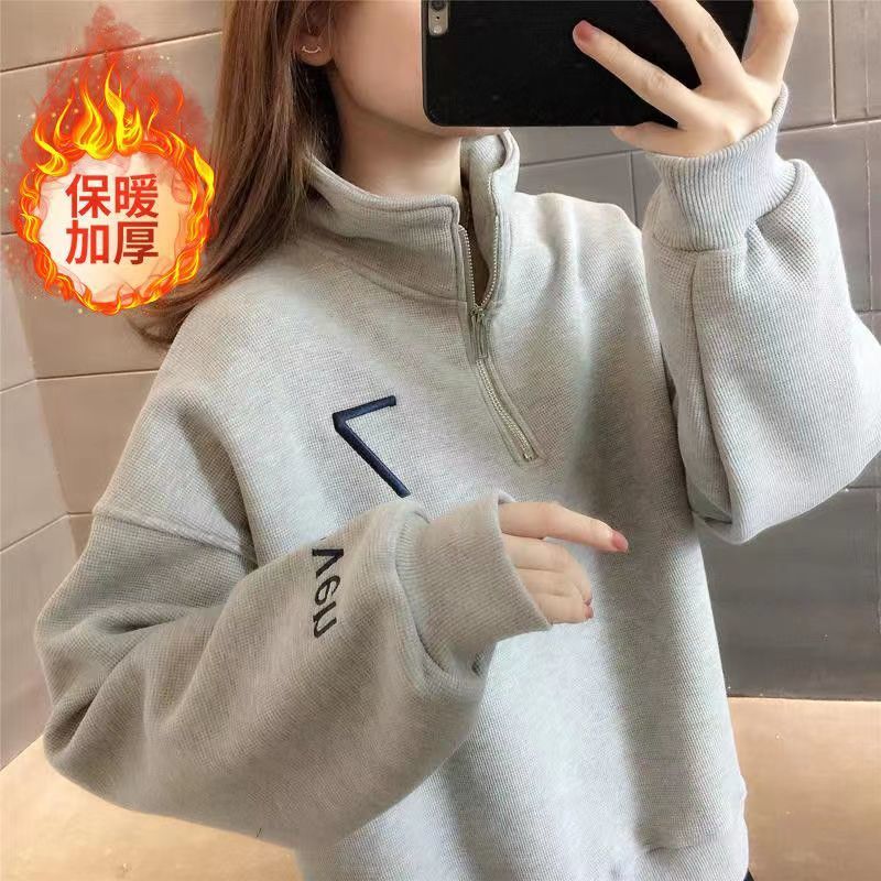 小红书推荐纯棉秋冬卫衣女2025新款秋冬韩版学生宽松加绒加厚半拉